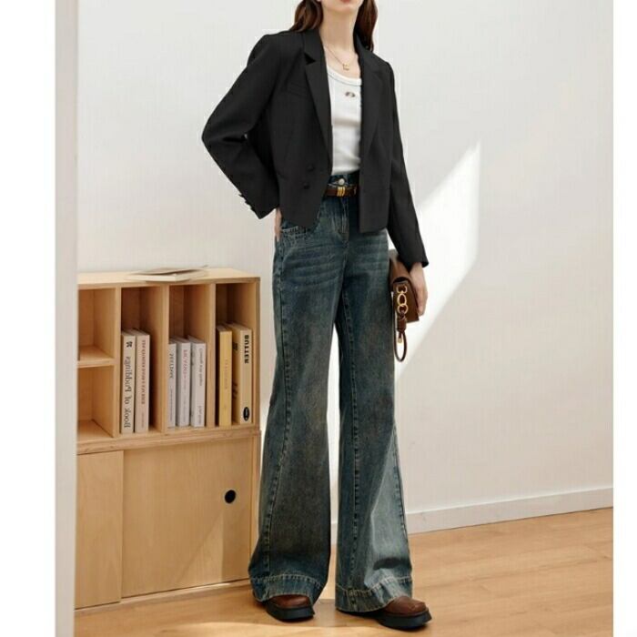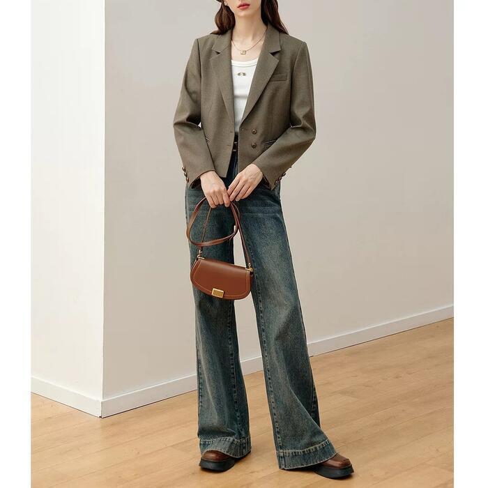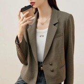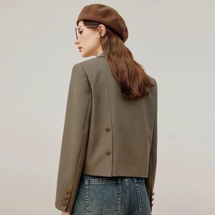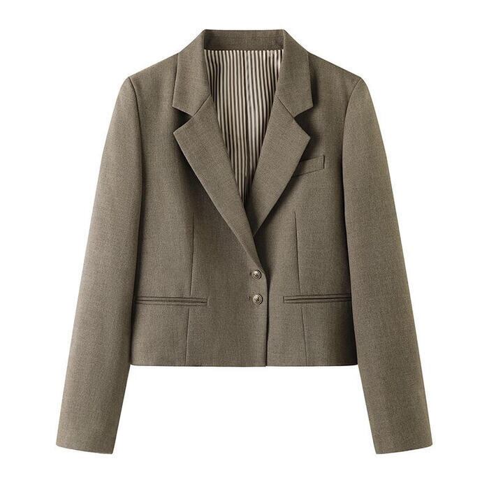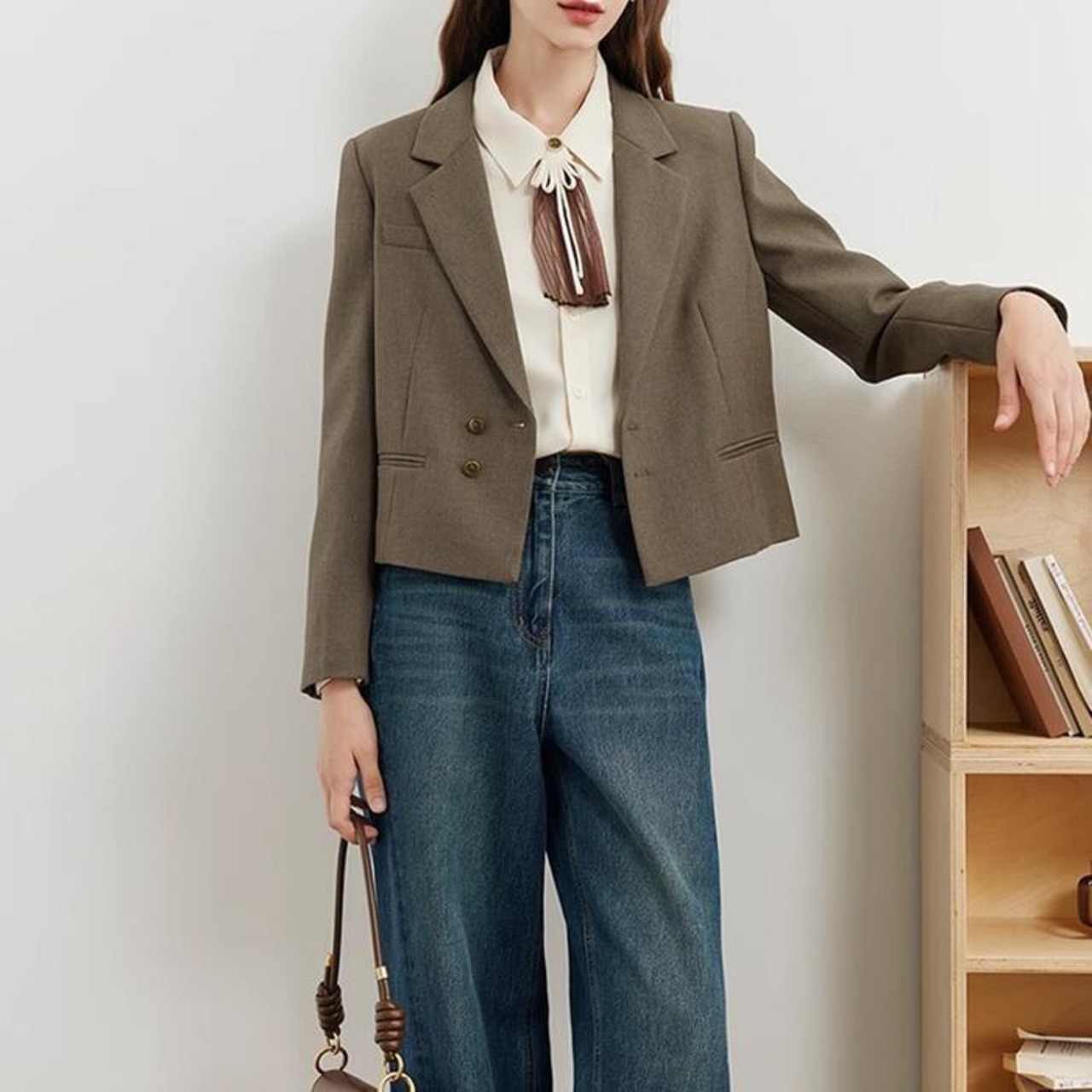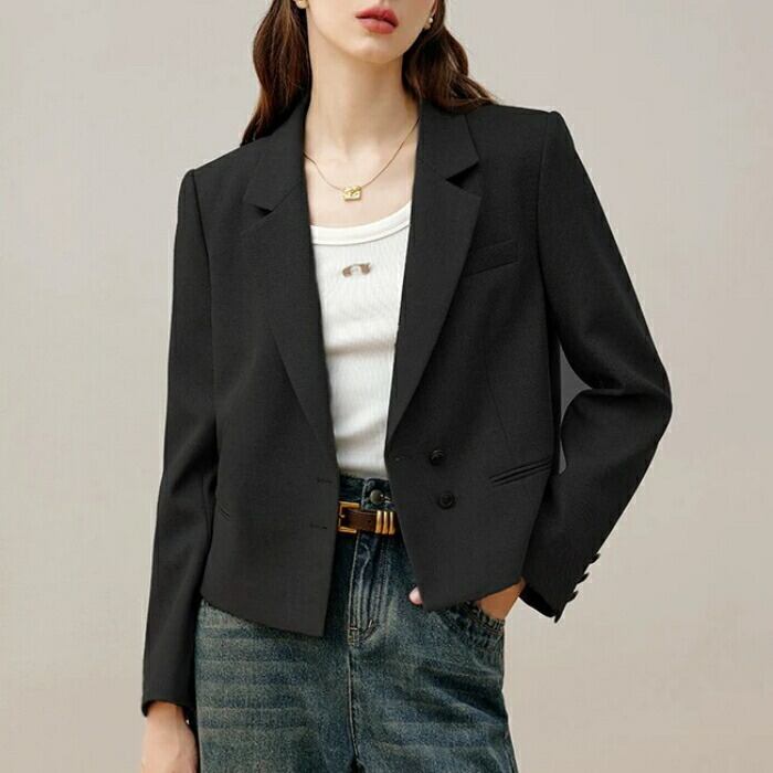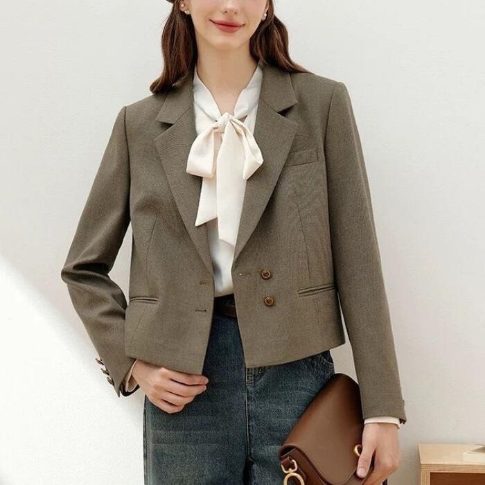 シンプルながらも旬な雰囲気をプラスするショートテーラードジャケット。