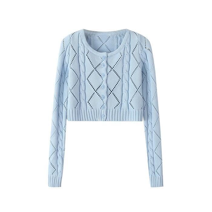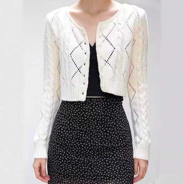 ケーブル柄で表情をプラスしたニットカーディガン。