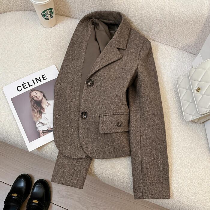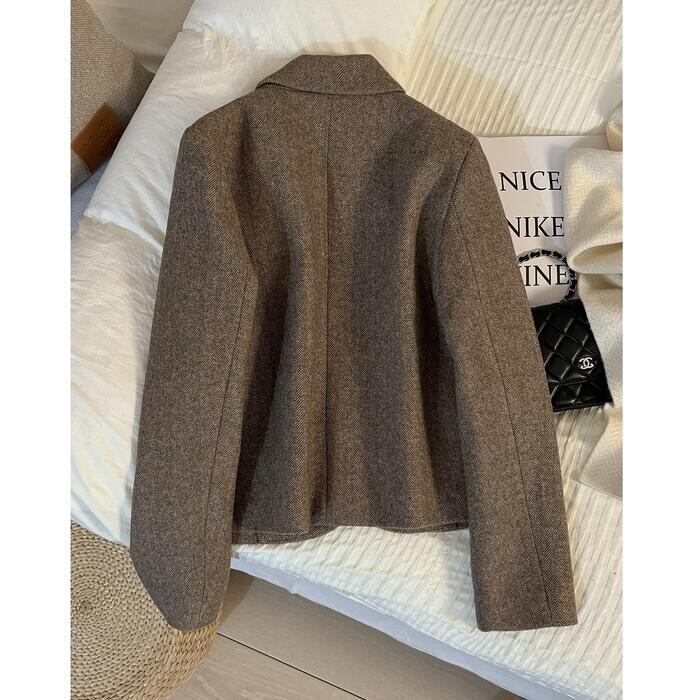 大きいサイズ 体型カバー フェミニン おしゃれ シンプル ママスーツ セレモニー 七五三 お宮参り 通勤 アウター コート ジャケット テーラード レディース きれいめ カジュアル 大人可愛い 春 秋 冬 ヘリンボーン 長袖 卒業式 卒園式 入園式 お呼ばれ トラッド ブラウン 20代 30代 40代 50代 S M L XL