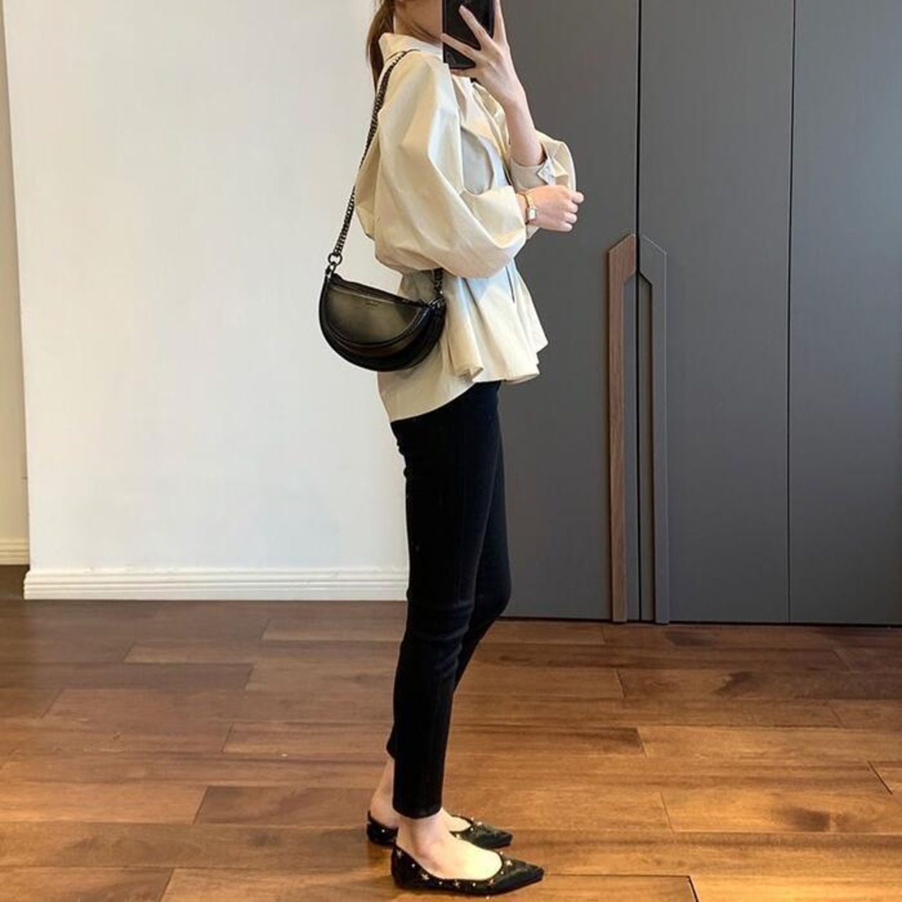 スラックスやデニム、スカートなど、どんなボトムとも相性抜群です。