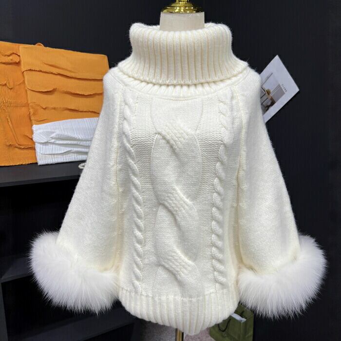 存在感のある袖口ファーがポイントのタートルネックニット。
