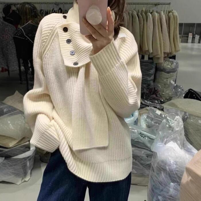 全5色 大きいサイズ 体型カバー エレガント フェミニン おしゃれ トップス ニット セーター カットソー レディース きれいめ カジュアル 大人可愛い 春 秋 冬 タートルネック Vネック 長袖 2way マフラー レッド 赤 ホワイト 白 ベージュ グレー 20代 30代 40代 50代 M L XL 2XL