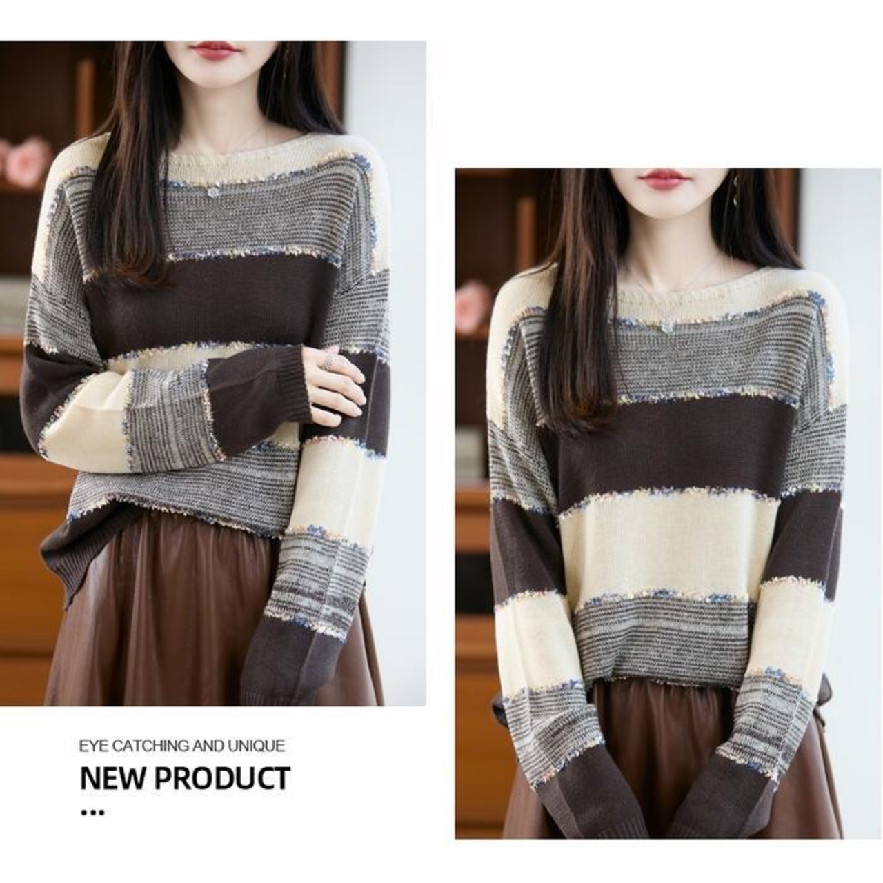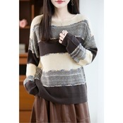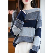 マルチボーダー柄が可愛いクルーネックニット。
