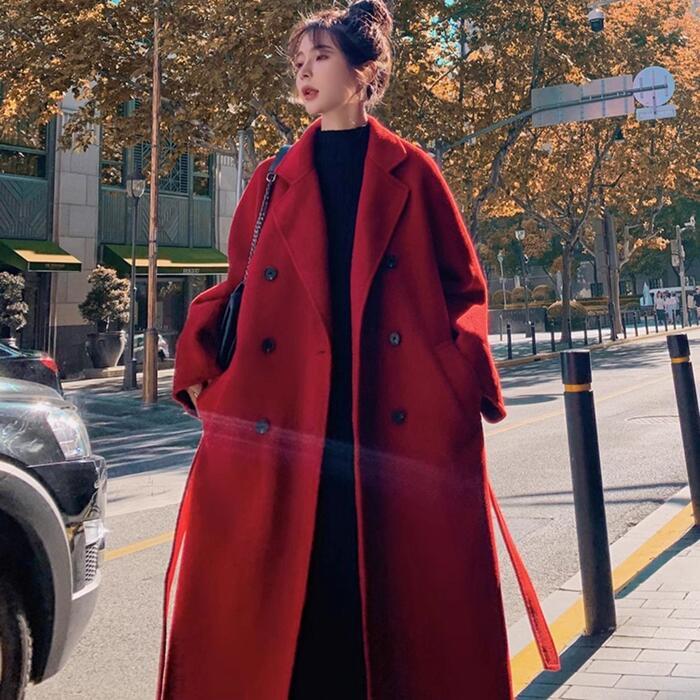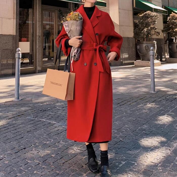 全2色 大きいサイズ 体型カバー エレガント フェミニン おしゃれ シンプル アウター コート チェスター 羽織り ジャケット レディース きれいめ カジュアル 大人可愛い 春 秋 冬 ロング丈 長袖 トラッド ウエストベルト レッド 赤 ブラック 黒 20代 30代 40代 50代 S M L XL 2XL 3XL 4XL