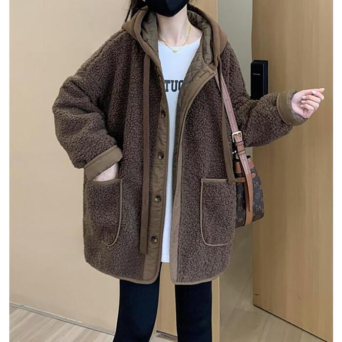 全2色 大きいサイズ 体型カバー エレガント フェミニン おしゃれ シンプル アウター コート ジャケット ブルゾン 羽織り レディース きれいめ カジュアル 大人可愛い 春 秋 冬 ミディ丈 フード ボア ジャンパー 長袖 アウトドア ブラウン ブラック 20代 30代 40代 50代 S M L XL
