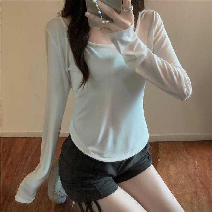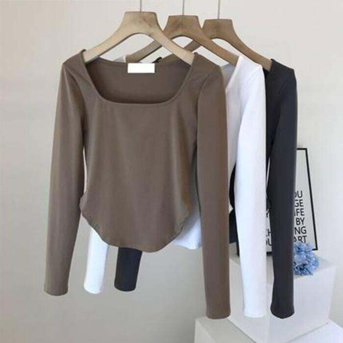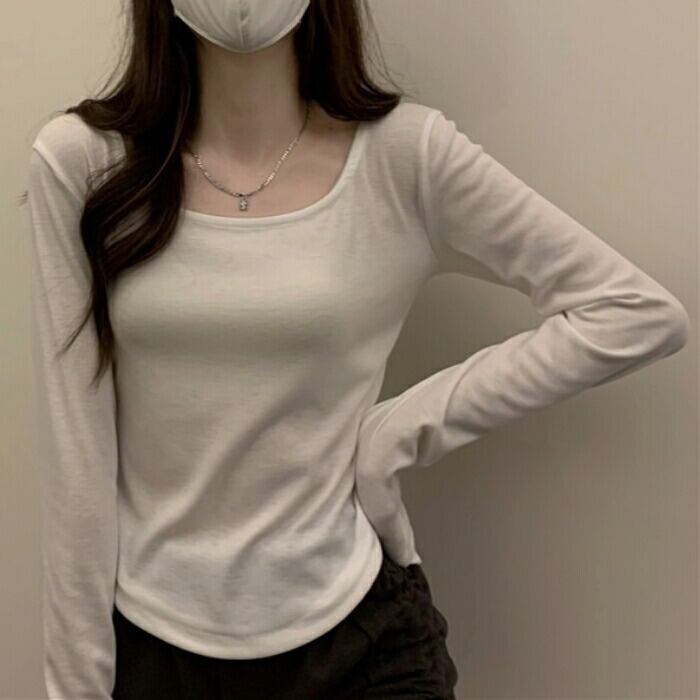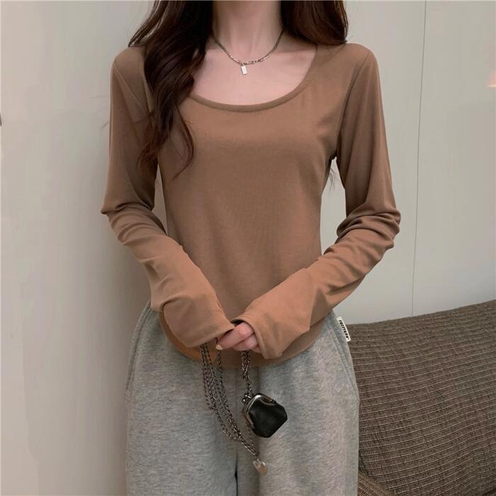 全2種3色 大きいサイズ 体型カバー エレガント フェミニン おしゃれ ショート丈 シンプル トップス Tシャツ カットソー レディース きれいめ カジュアル 大人可愛い 春 秋 冬 裏起毛 長袖 インナー 無地 レイヤード ベージュ グレー ブラウン 20代 30代 40代 50代 S M L XL