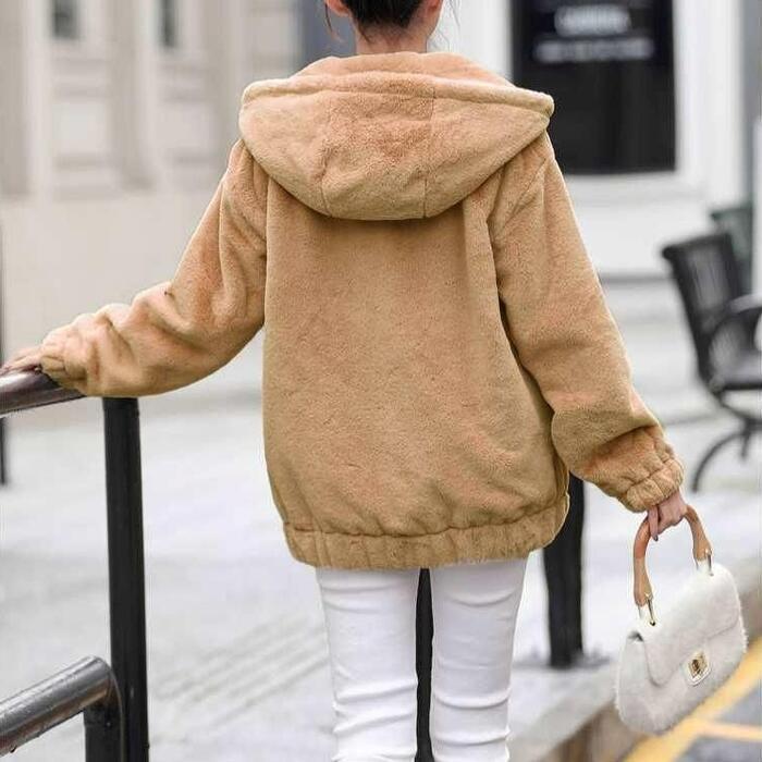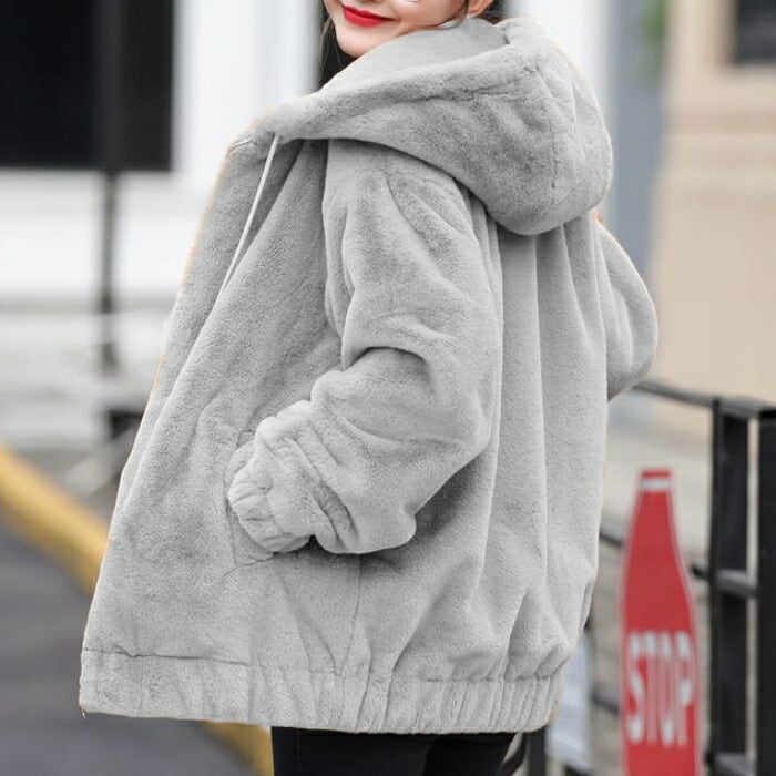 ふんわりとしたフェイクファー素材が魅力の、あたたかくて可愛いパーカー。