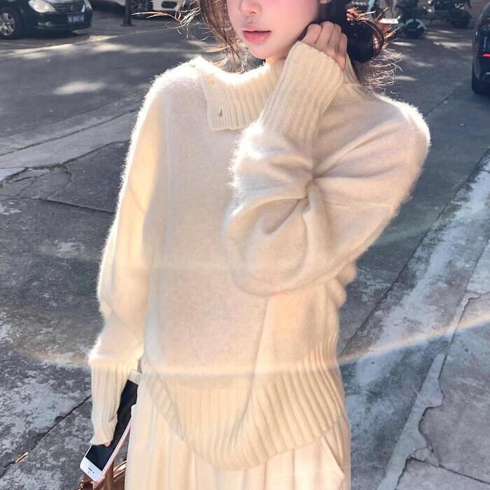 ふんわりと起毛感のある優しい素材と、ルーズなシルエットが魅力のニットプルオーバーです。