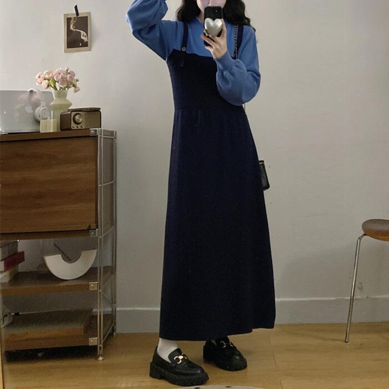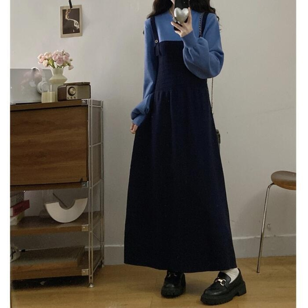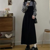 重ね着風のデザインが可愛い、1枚でコーデが完成するフェイクレイヤードワンピース。