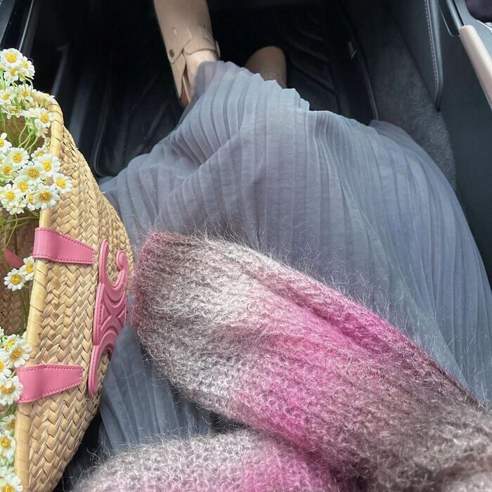 デニムやなどのシンプルなボトムスと合わせるだけで、ニットの華やかさが引き立ちます。