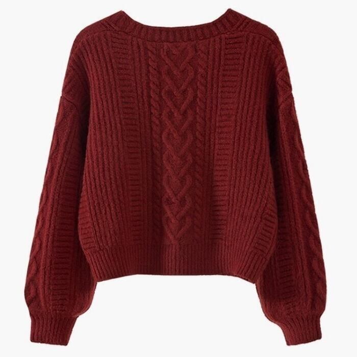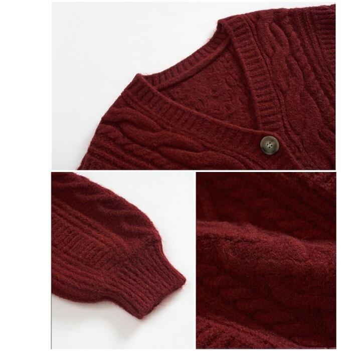 ざっくりとした編み地が可愛いケーブルニットカーディガン。