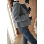 コンパクトなサイズ感のノーカラーショートジャケット。