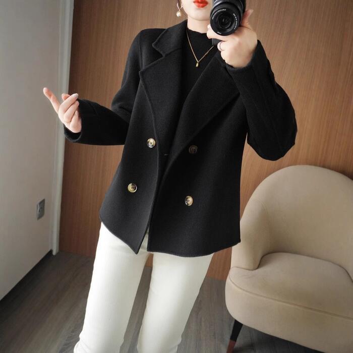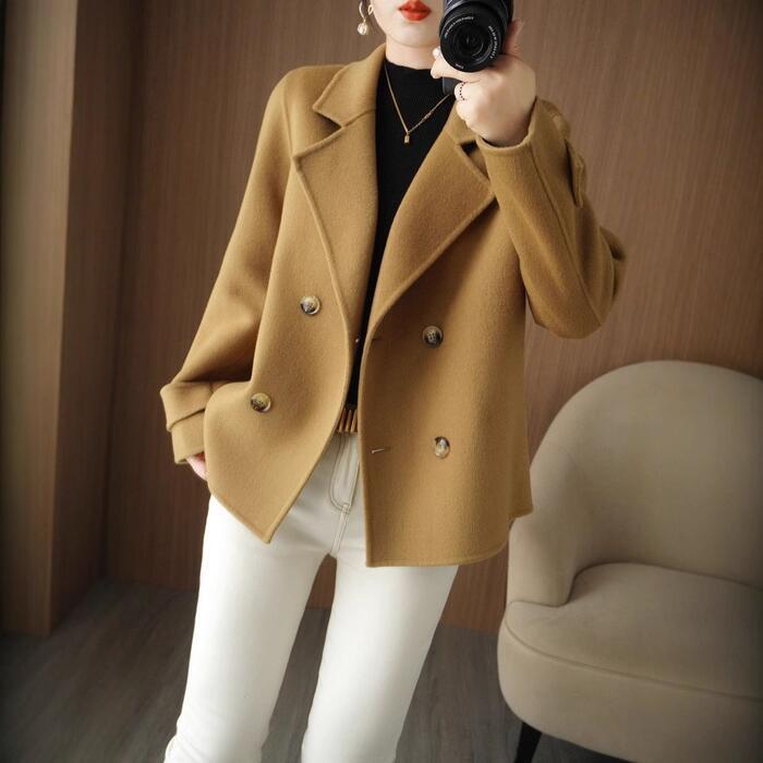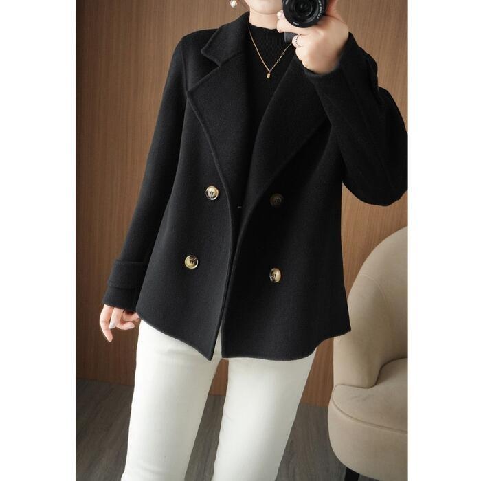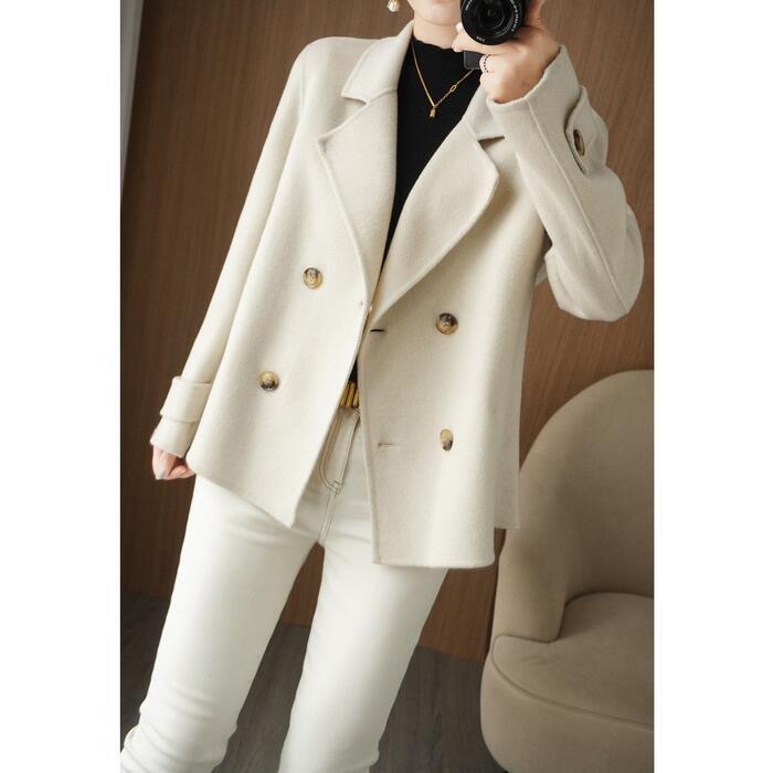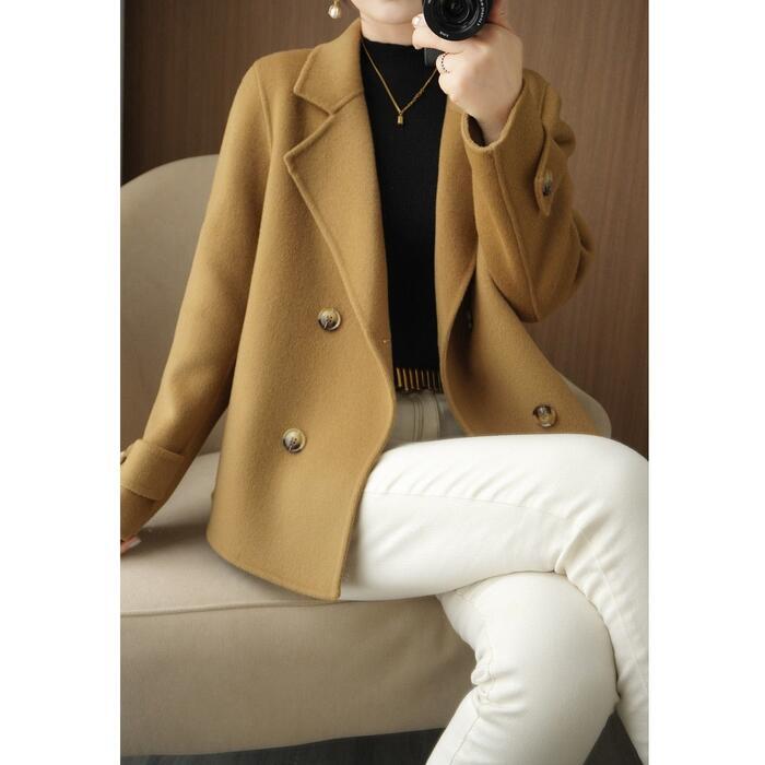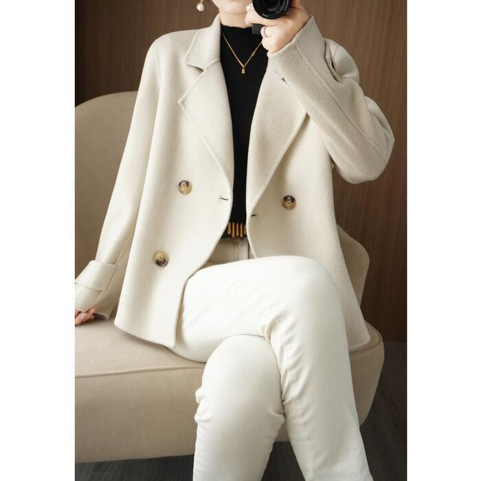 洗練された大人な印象を与えるダブルブレストのショートコート。
