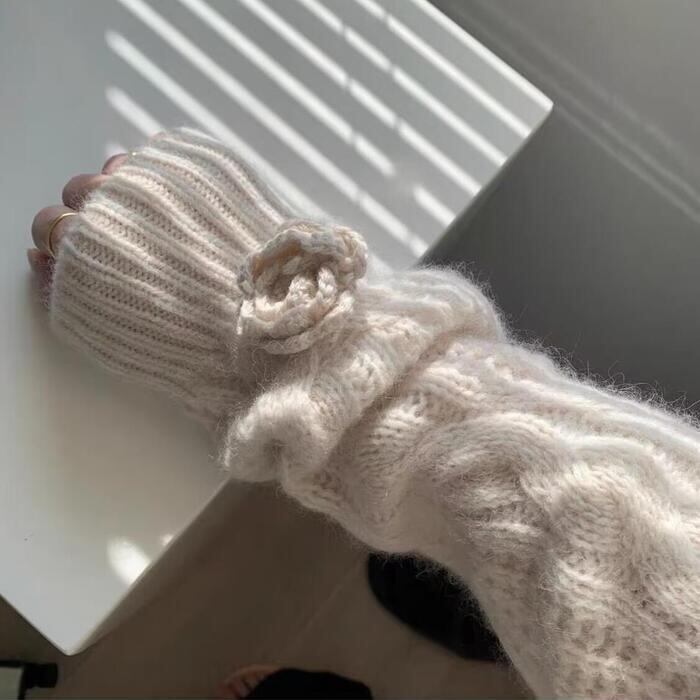 立体的なフラワーモチーフが施された、デザイン性の高いニットトップスです。