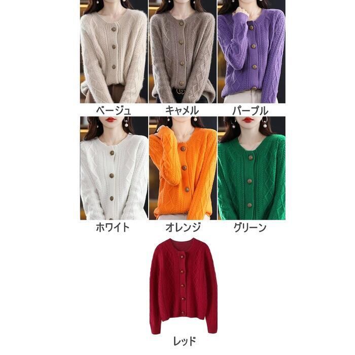 全7色 大きいサイズ 体型カバー エレガント フェミニン おしゃれ 羽織り トップス ニット セーター カーディガン レディース きれいめ カジュアル 大人可愛い 春 秋 冬 クルーネック ケーブル 長袖 ベージュ パープル 紫 オレンジ レッド 赤 グリーン 緑 ホワイト 白 20代 30代 40代 50代 M L