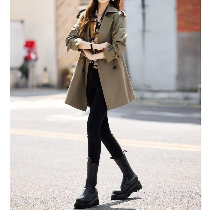 さらっと羽織れる軽やかさが魅力のミディ丈トレンチコート。
