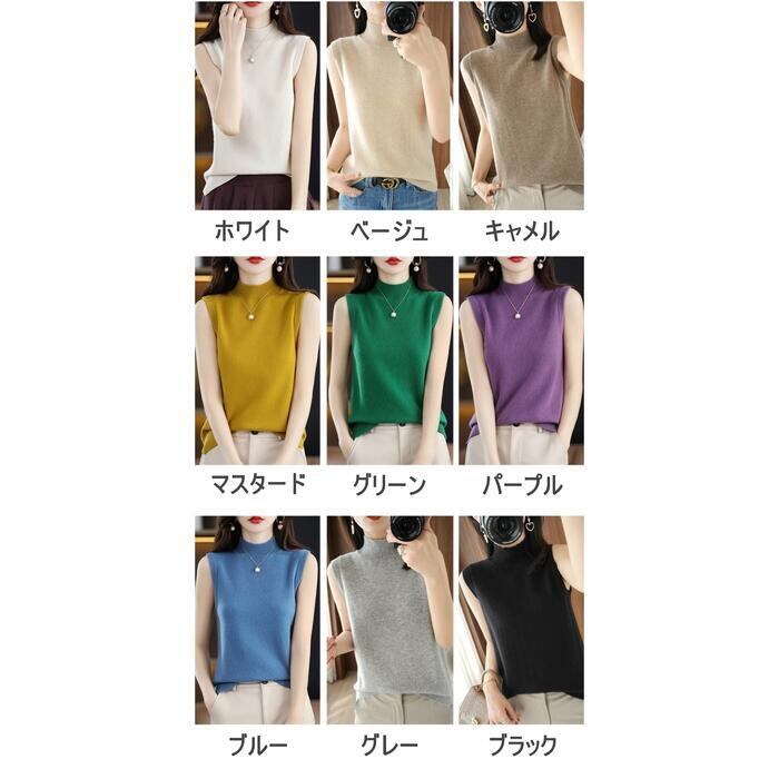 全9色 大きいサイズ 体型カバー エレガント フェミニン おしゃれ プルオーバー インナー タートルネック トップス ニット セーター レディース きれいめ カジュアル 大人可愛い 春 秋 冬 ハイネック ノースリーブ ベージュ グレー グリーン 緑 パープル ブルー 青 イエロー ホワイト 白 ブラック 黒 20代 30代 40代 50代 S M L