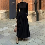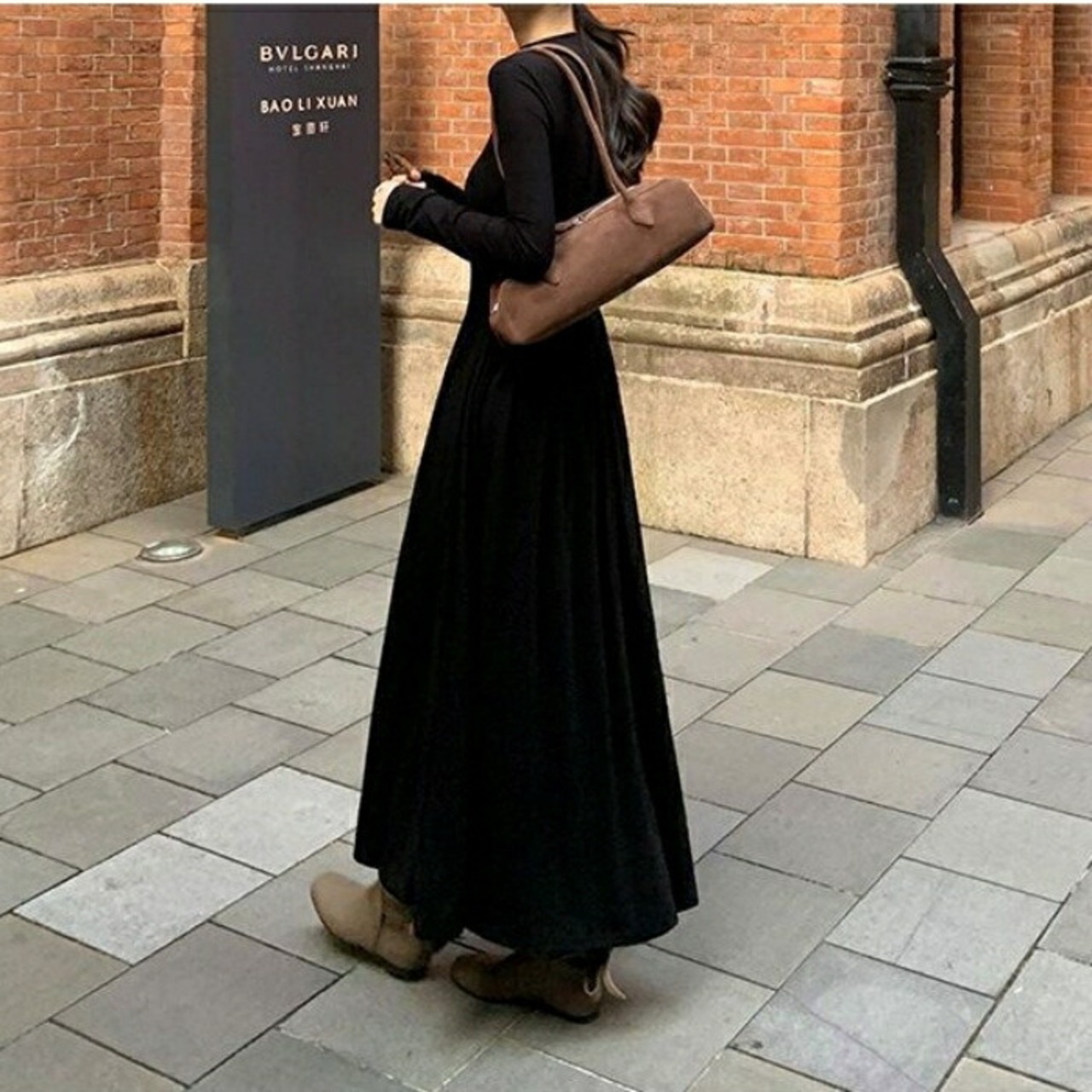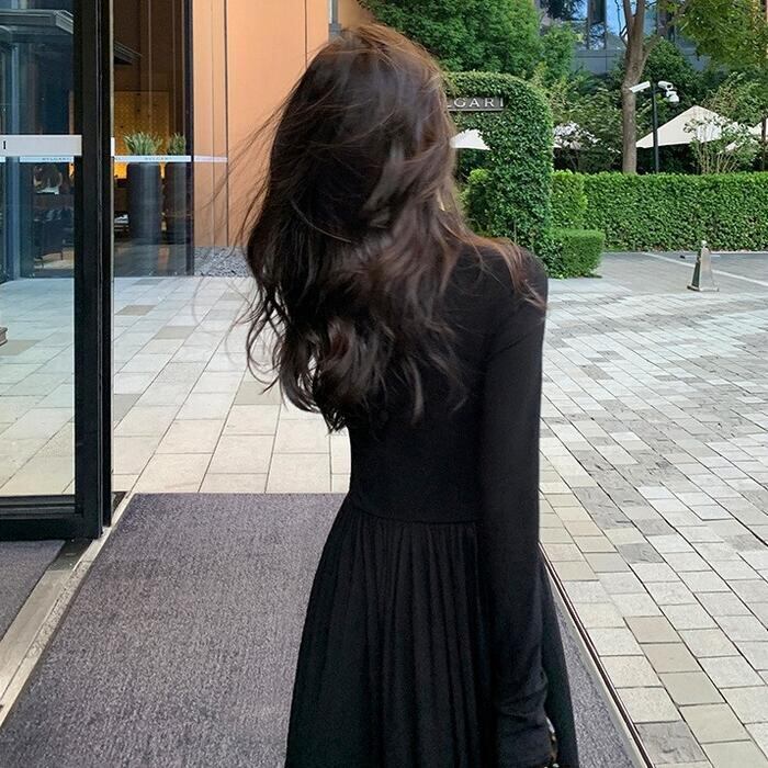クラシカルな雰囲気を持つ、ロング丈の長袖ワンピースです。