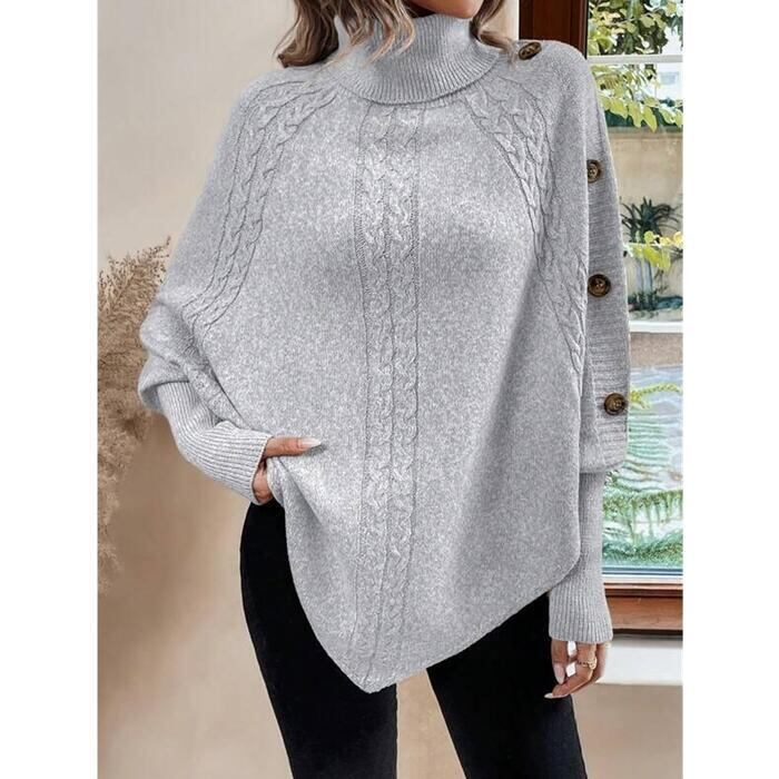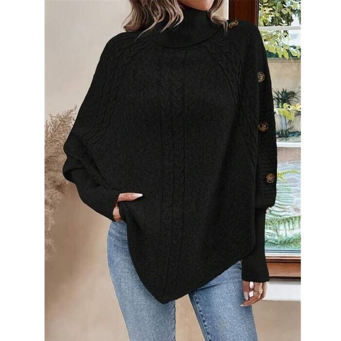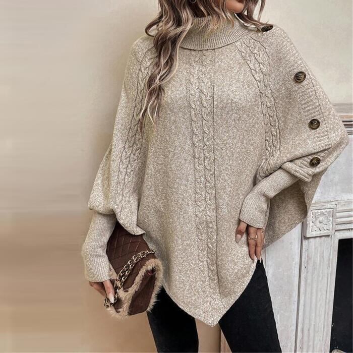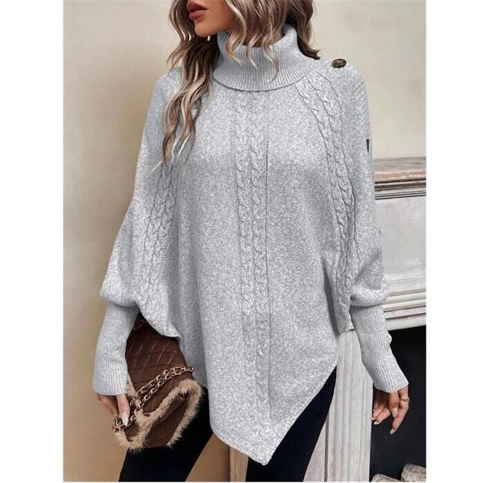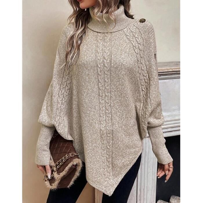 全3色 大きいサイズ 体型カバー エレガント フェミニン おしゃれ トップス ニット セーター レディース きれいめ カジュアル 大人可愛い 春 秋 冬 タートルネック ハイネック ポンチョ風 ドルマンスリーブ 長袖 ベージュ グレー ブラック 黒 20代 30代 40代 50代 S M L XL