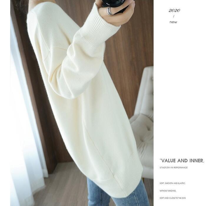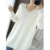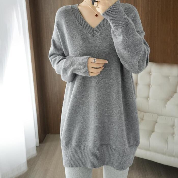 体を包み込むようなボリューム感が魅力の、Vネック長袖ニットです。