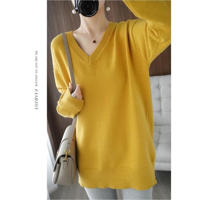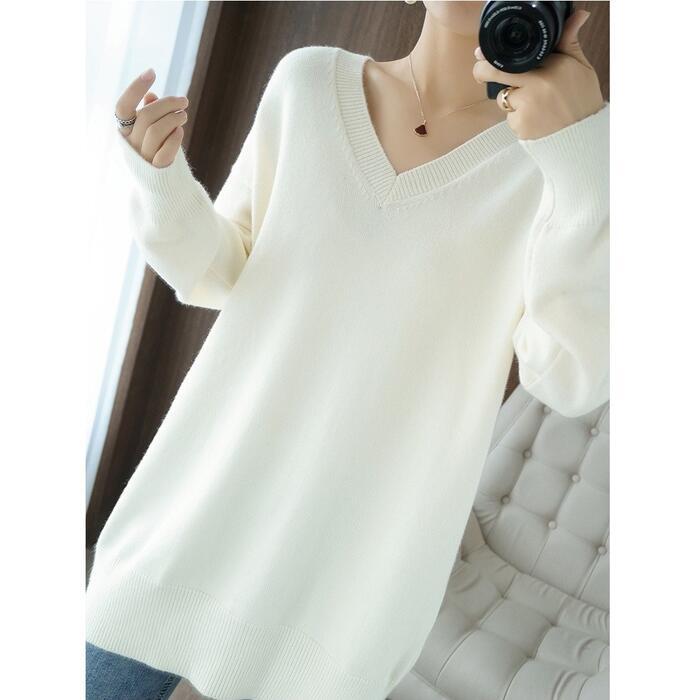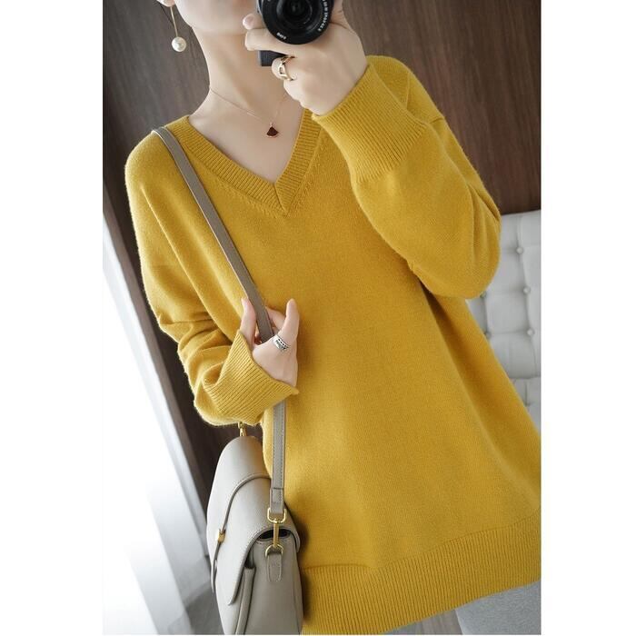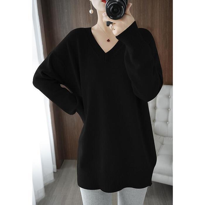 全4色 大きいサイズ 体型カバー エレガント フェミニン おしゃれ シンプル トップス ニット セーター レディース きれいめ カジュアル 大人可愛い 春 秋 冬 Vネック 長袖 カットソー 無地 グレー イエロー ブラック 黒 ホワイト 白 20代 30代 40代 50代 M L XL 2XL 3XL
