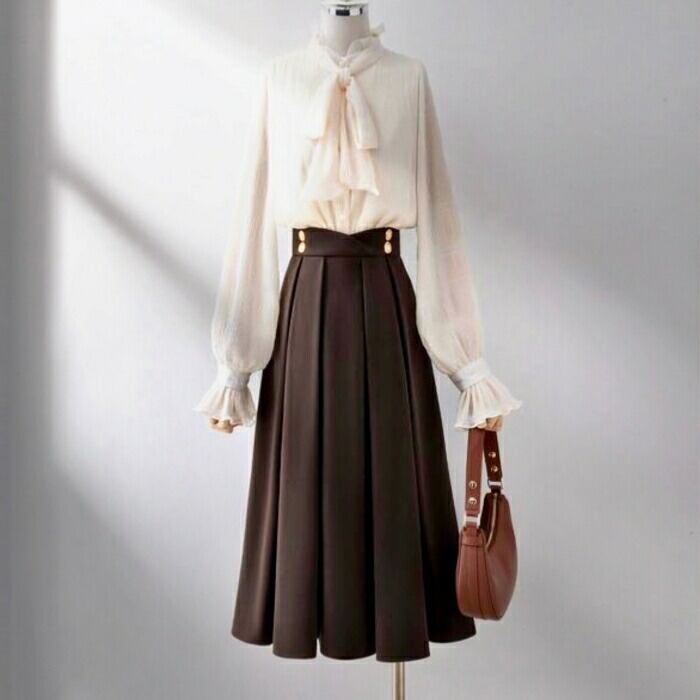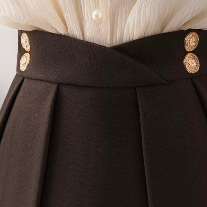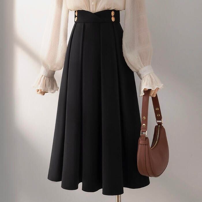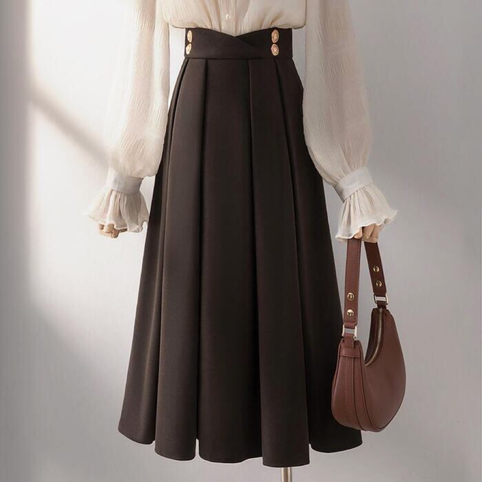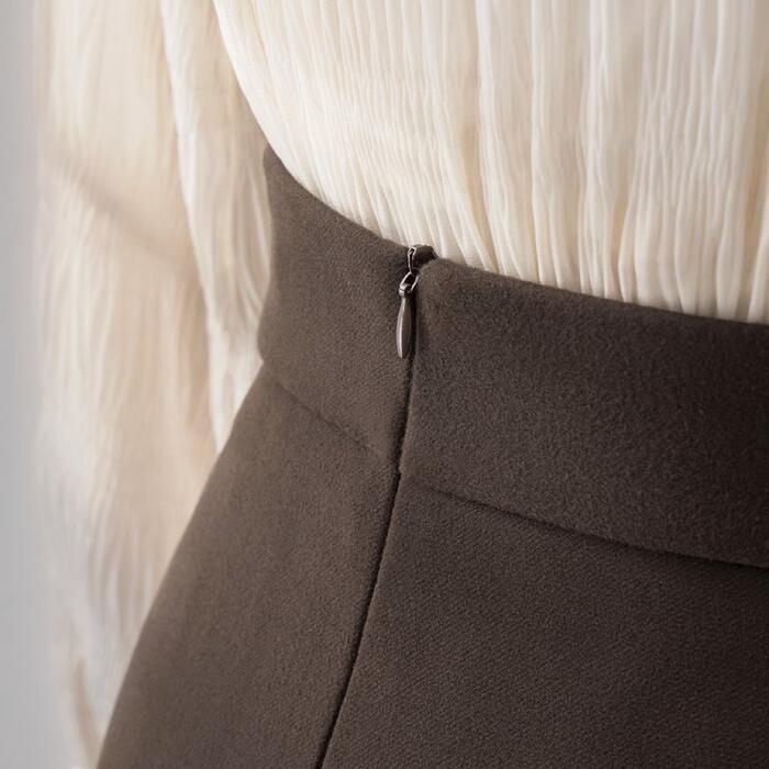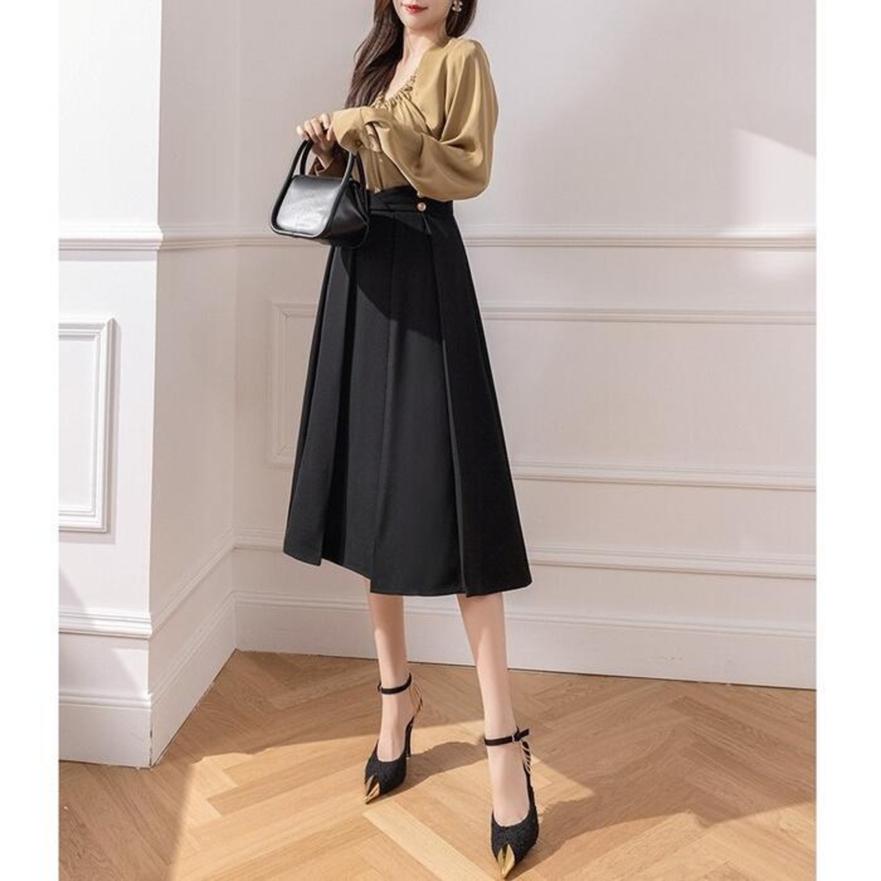 上品なシルエットと洗練されたデザインが魅力のAラインミディスカートです。