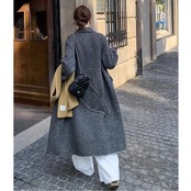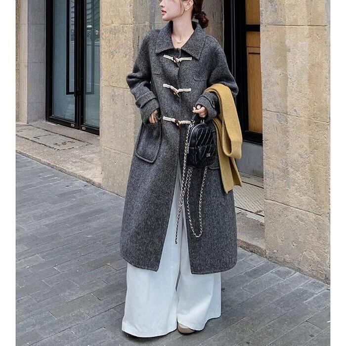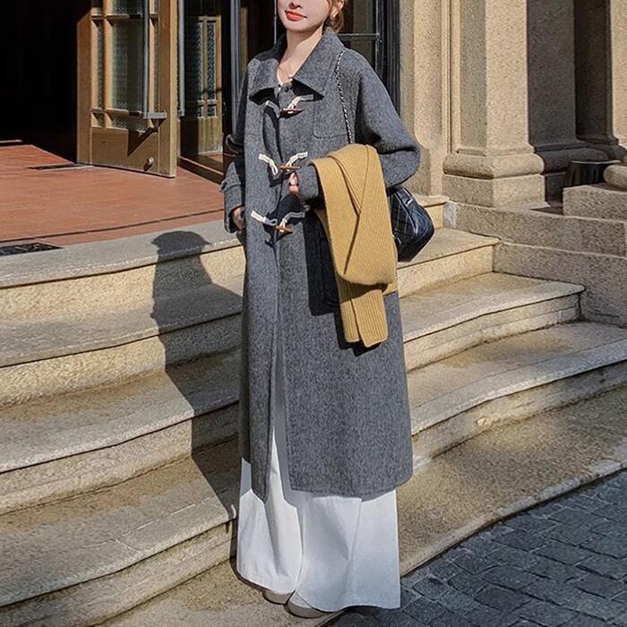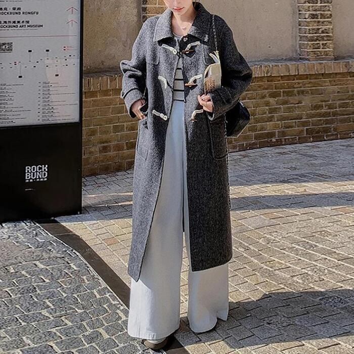 全2色 大きいサイズ 体型カバー エレガント フェミニン おしゃれ シンプル アウター コート ジャケット レディース きれいめ カジュアル 大人可愛い 春 秋 冬 ダッフルコート ステンカラー 中綿 長袖 ロングコート グレーブラック 黒 20代 30代 40代 50代 XS S M L XL