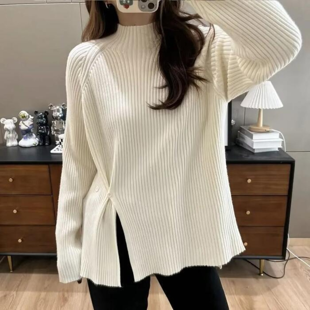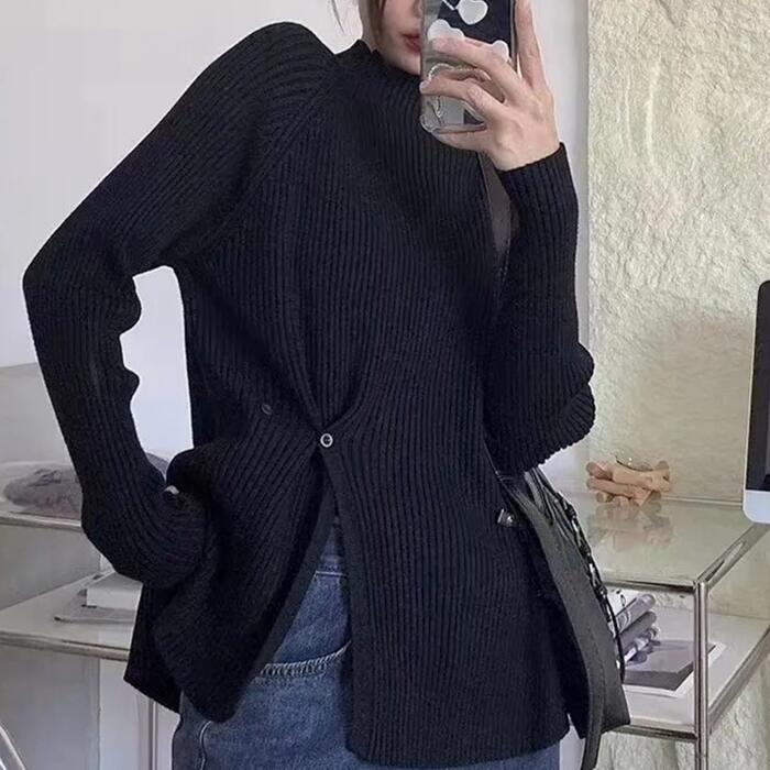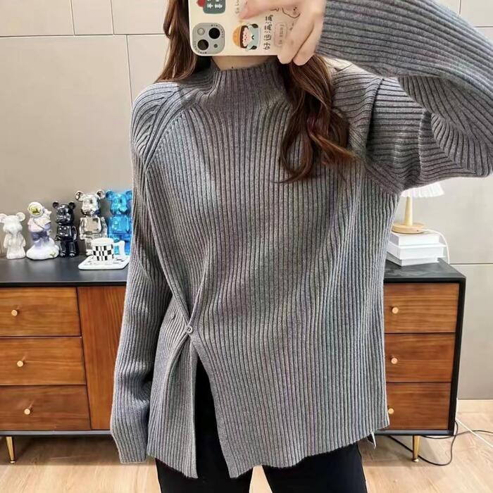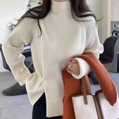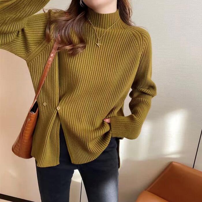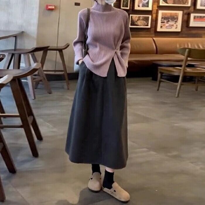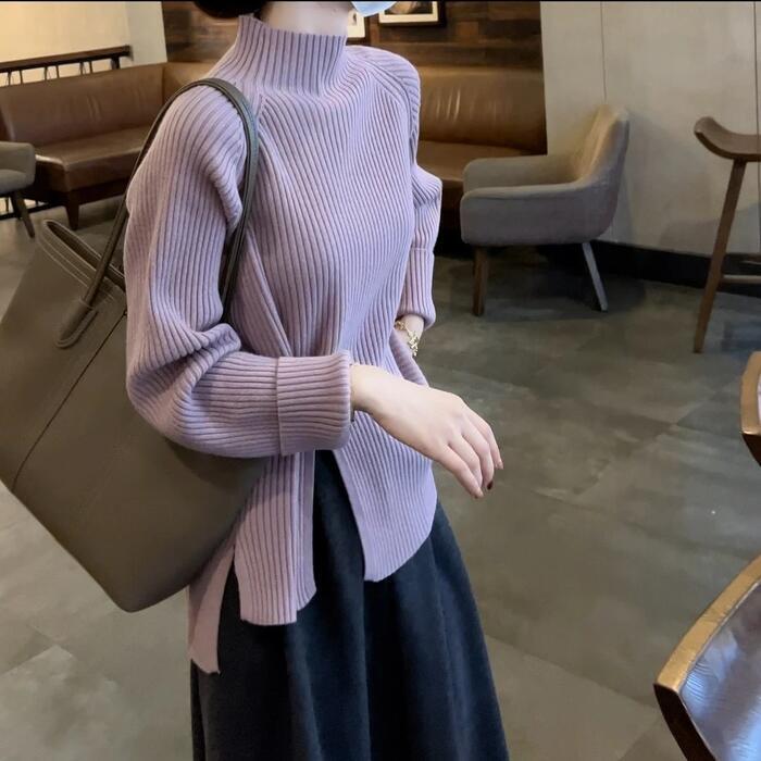 全6色 大きいサイズ 体型カバー エレガント フェミニン おしゃれ トップス ニット セーター レディース きれいめ カジュアル 大人可愛い 春 秋 冬 長袖 ハイネック リブ スリット 無地 パープル グリーン 緑 ホワイト 白 グレー ブラック 黒 レッド 赤 20代 30代 40代 50代 L XL 2XL 3XL