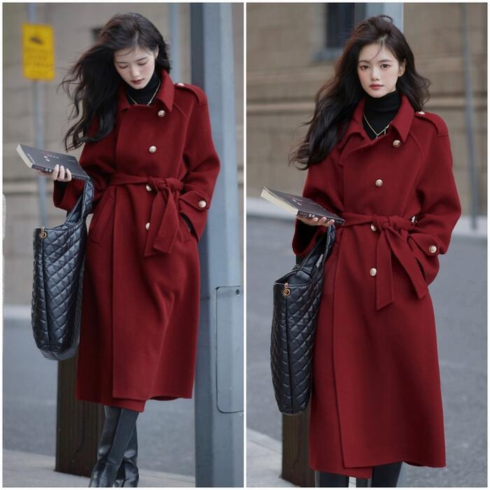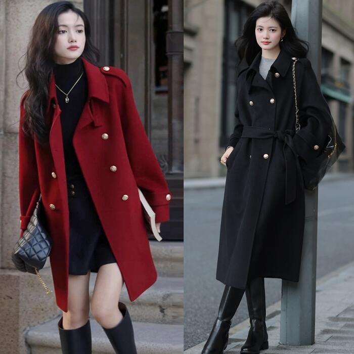 全2種2色 大きいサイズ 体型カバー エレガント フェミニン おしゃれ シンプル アウター コート ジャケット レディース きれいめ カジュアル 大人可愛い 春 秋 冬 チェスターコート ミディ丈 ロング丈 トレンチ ウエストベルト 長袖 レッド 赤 ブラック 黒 20代 30代 40代 50代 S M L XL