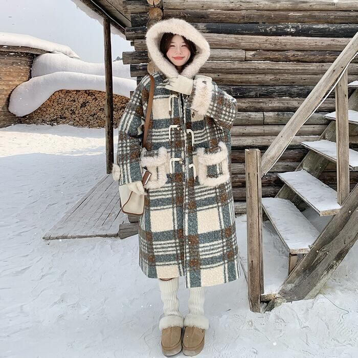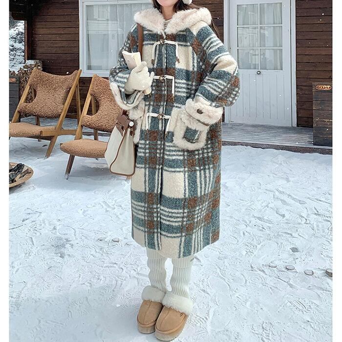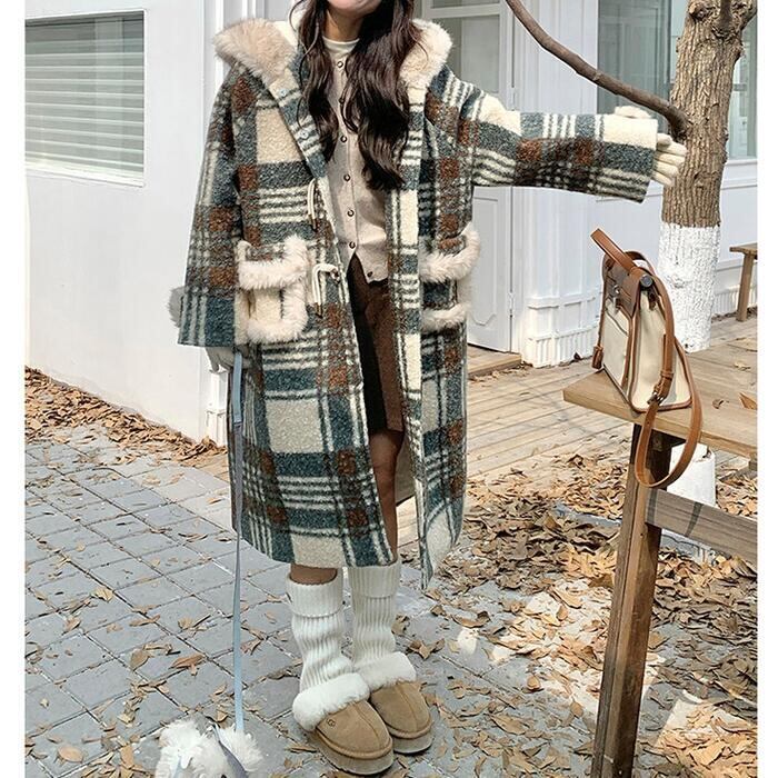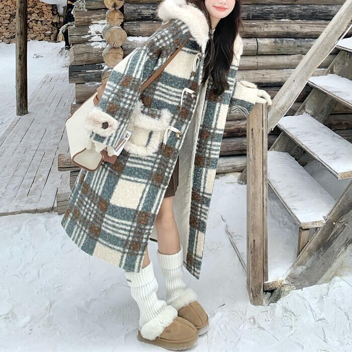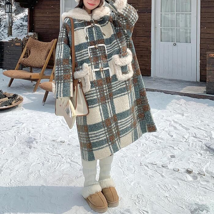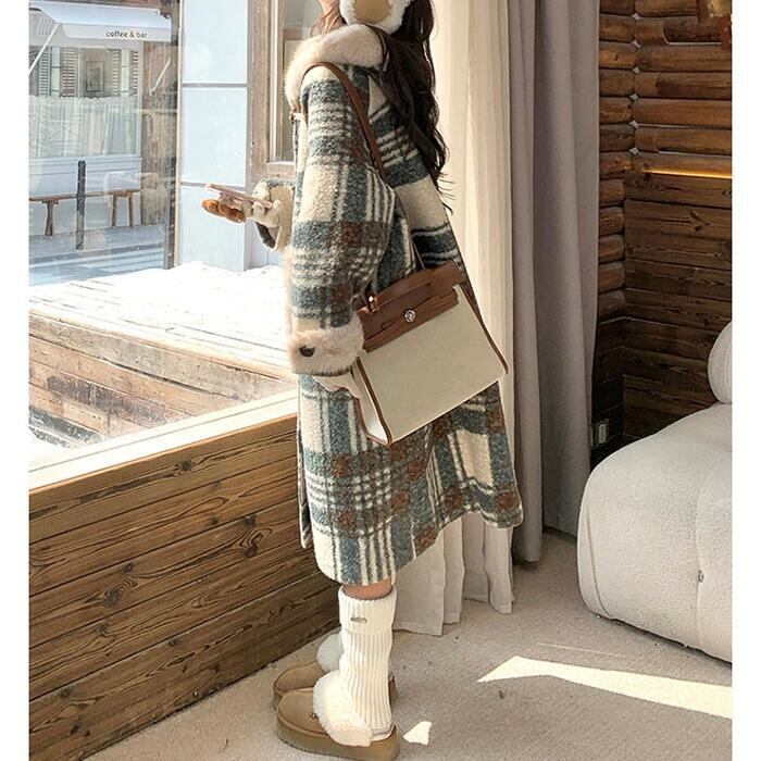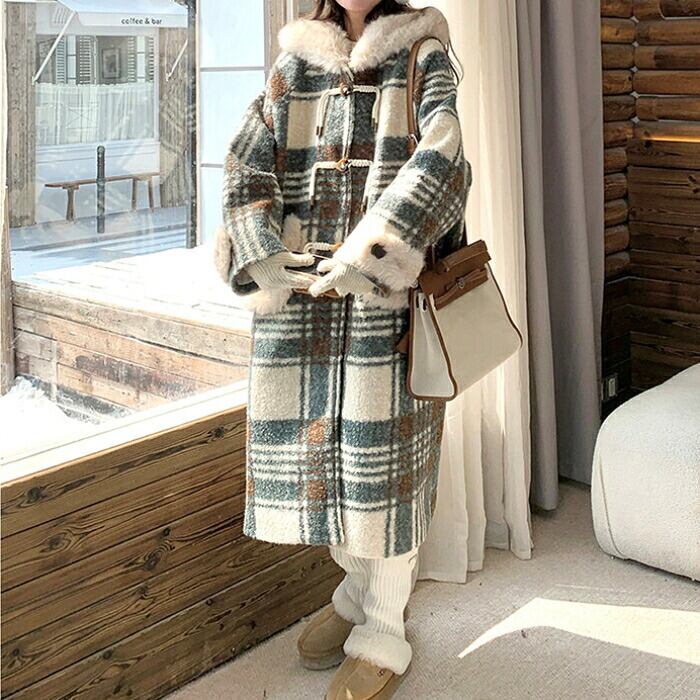 冬の装いを一気に可愛く暖かく仕上げてくれるチェック柄ボアコート。