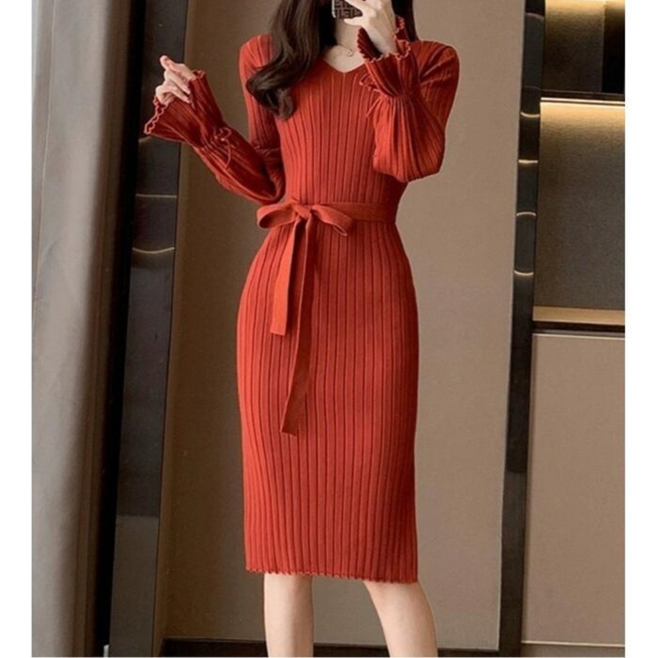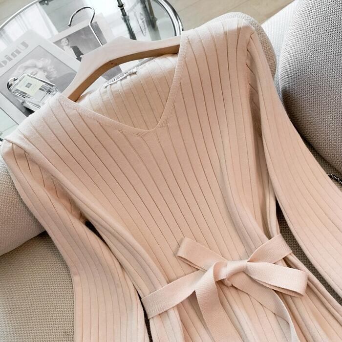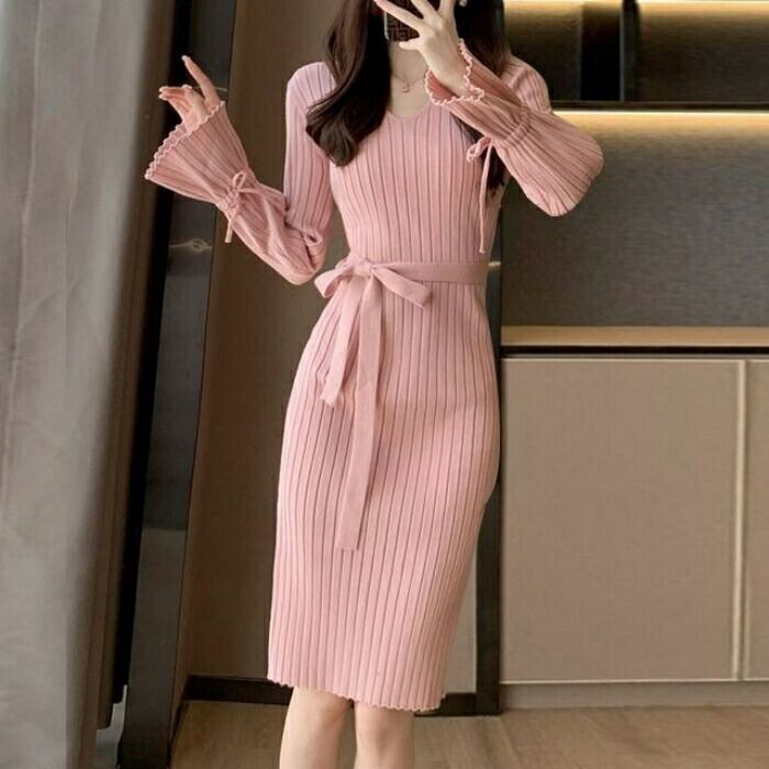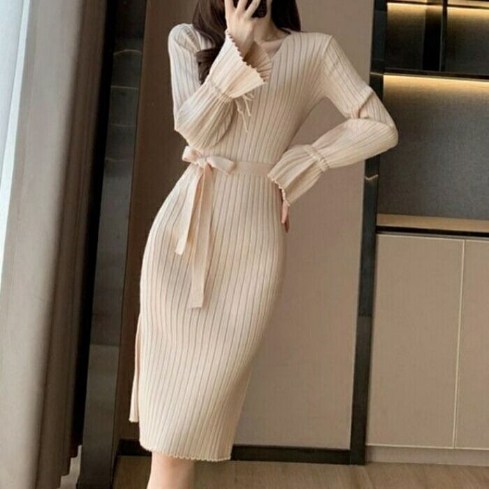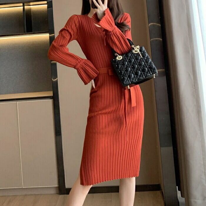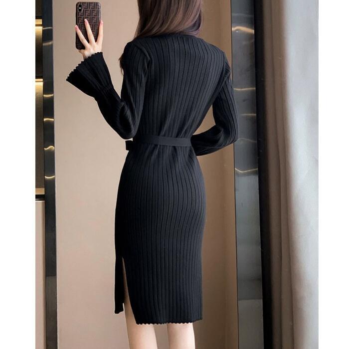 柔らかなリブニットのミディ丈ワンピース。