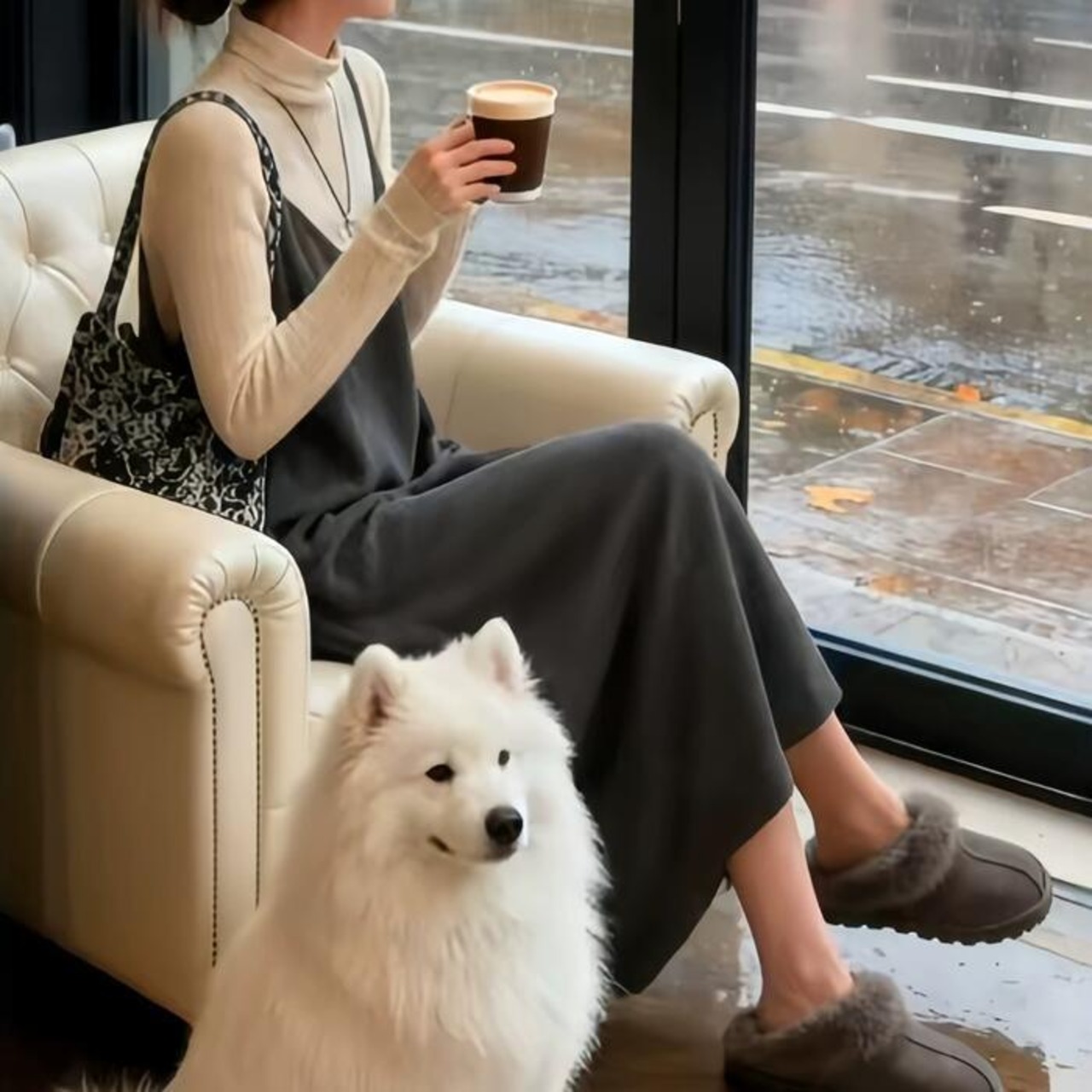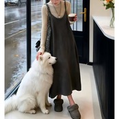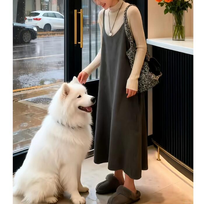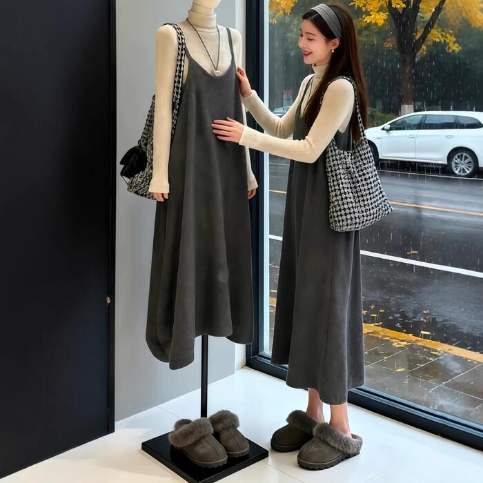 今っぽいレイヤードスタイルが完成する、タートルニットとキャミワンピのセット。