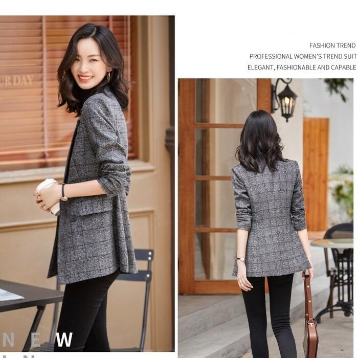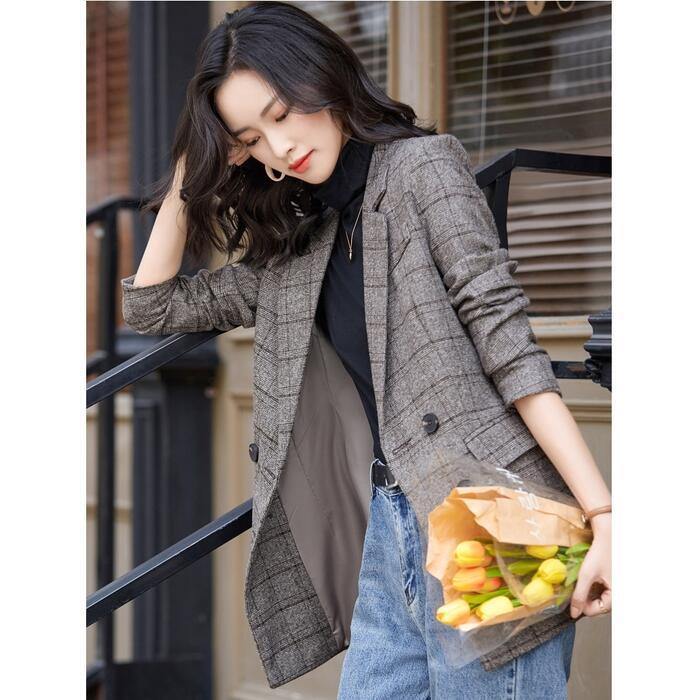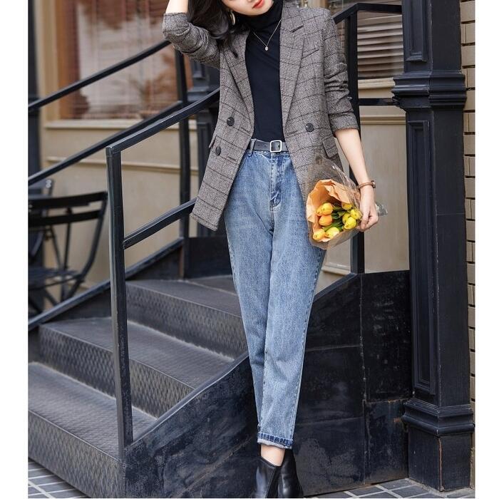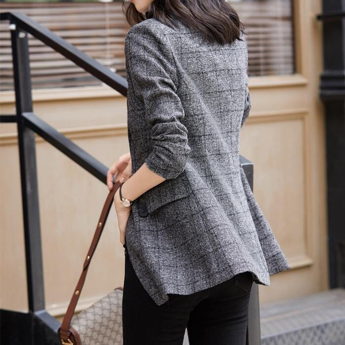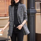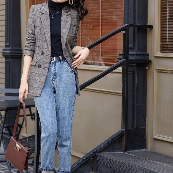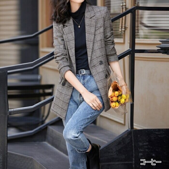 クラシカルな雰囲気のチェック柄ダブルジャケット。