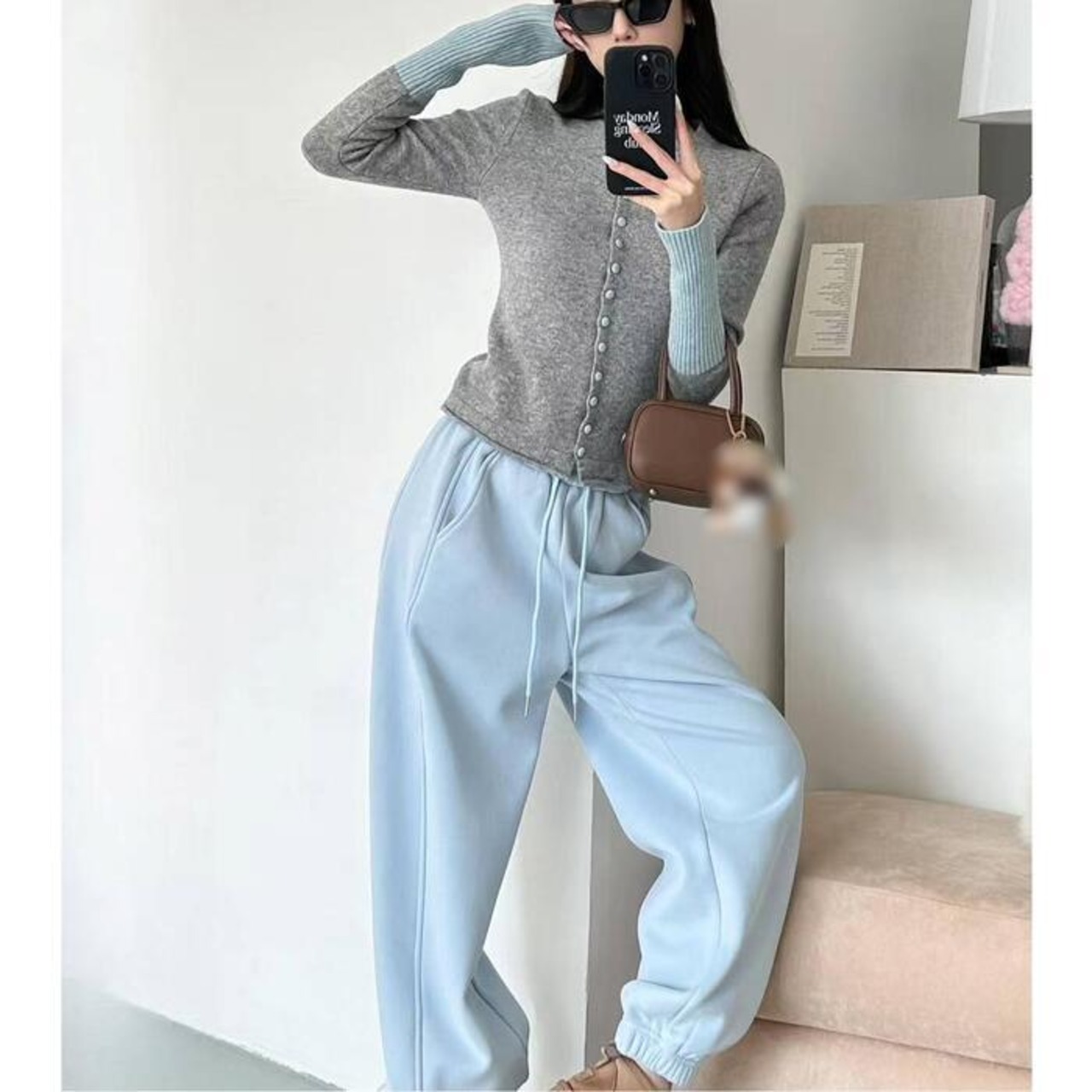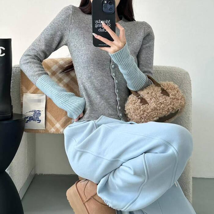 ベーシックなグレーカラーをベースに、袖口に淡いブルーを配し、さりげなく女性らしさと爽やかさをプラスします。