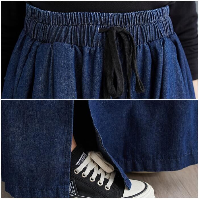 ロングスカートのような優雅な揺れ感を楽しめるデニムワイドパンツ。