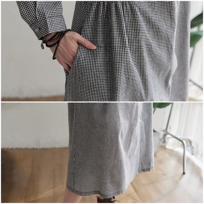 ギンガムチェック柄が大人可愛い、ナチュラルで軽やかなシャツワンピース。