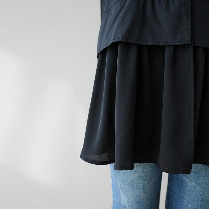 レイヤード風の切り替えデザインがお洒落なシャツブラウス。