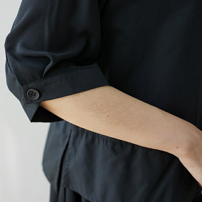 二の腕をスマートに隠してくれる絶妙な袖丈で、長いシーズン着用いただけるアイテムです。