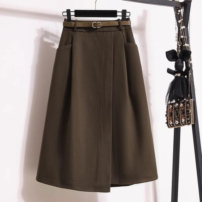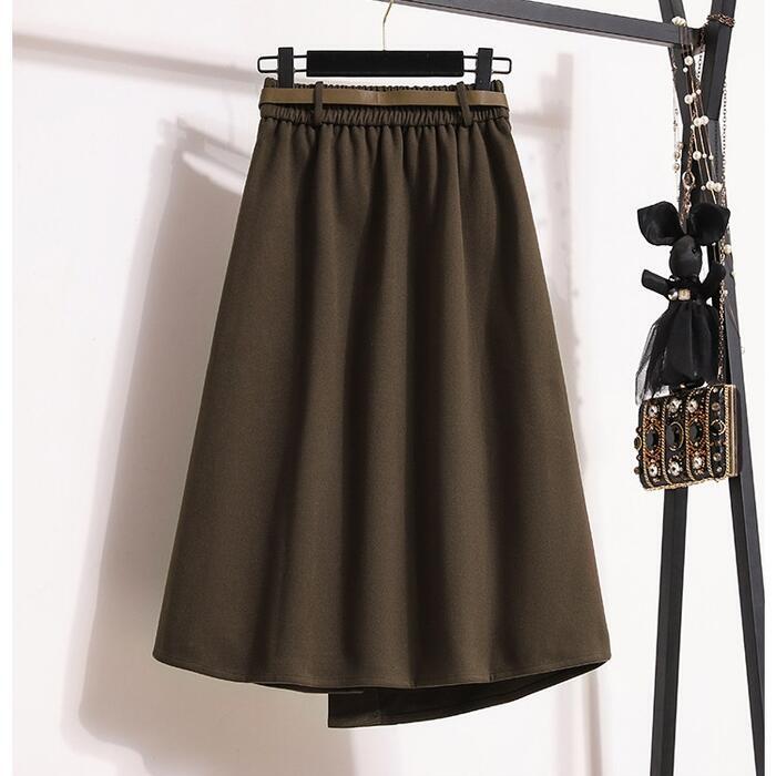 全2色 大きいサイズ 体型カバー エレガント フェミニン おしゃれ 楽ちん シンプル ボトムス スカート レディース きれいめ カジュアル 大人可愛い 春 秋 冬 Aライン スリット ミモレ丈 ウエストゴム アシンメトリー ブラウン ブラック 黒 20代 30代 40代 50代 L XL 2XL 3XL 4XL