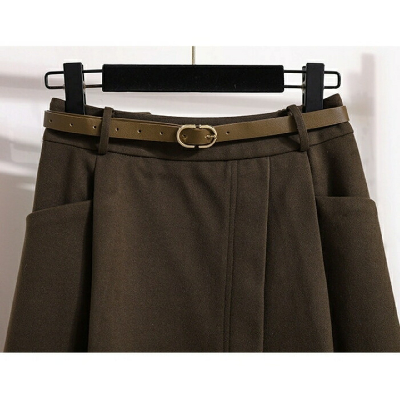ラップ風デザインのAラインスカート。