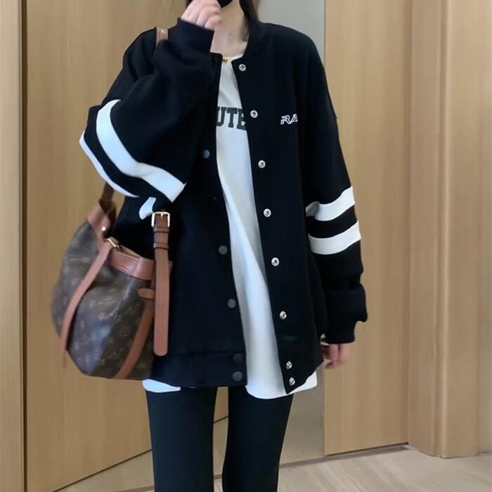 大きいサイズ 体型カバー エレガント フェミニン おしゃれ シンプル アウター コート ジャケット レディース きれいめ カジュアル 大人可愛い 春 秋 冬 スタジャン ブルゾン 羽織り スポーティー 長袖 ブラック 黒 20代 30代 40代 50代 M L XL 2XL 3XL 4XL