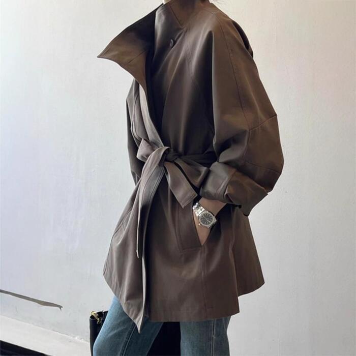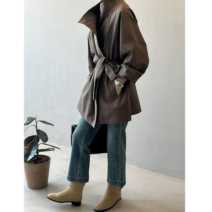 洗練された大人カジュアルな雰囲気のウエストベルト付きミドル丈コートです。