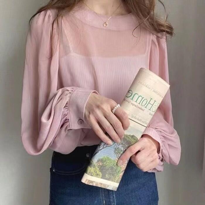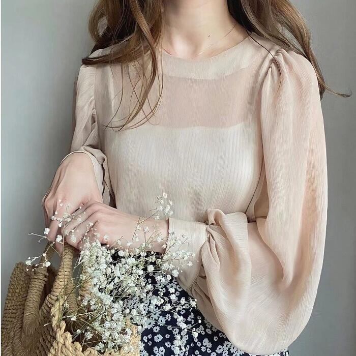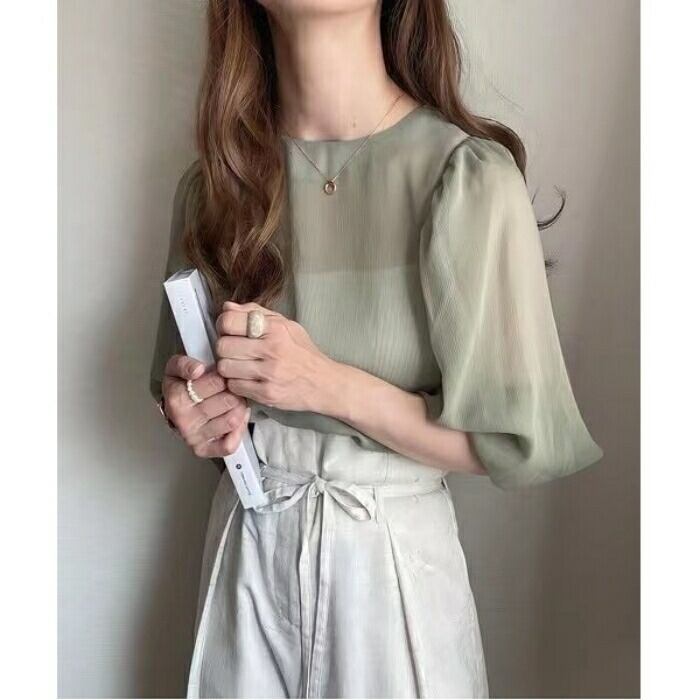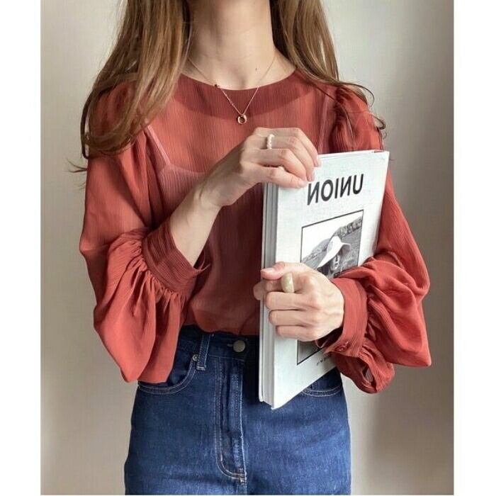 繊細な透け感と表面感のある楊柳シフォン生地を使用したシアーブラウス。