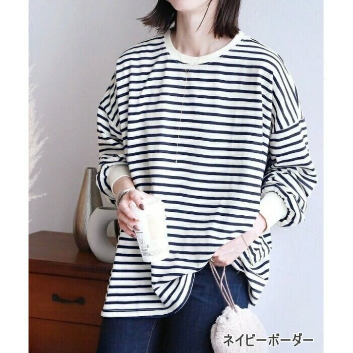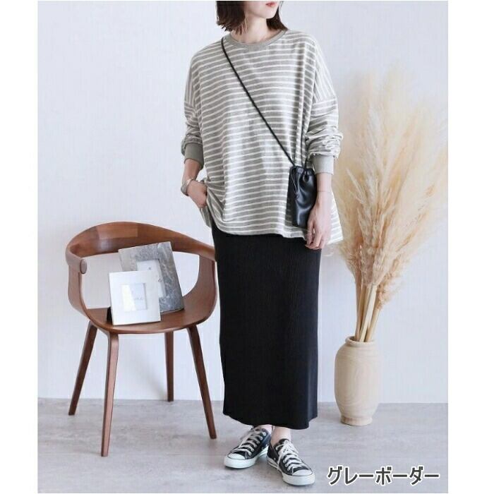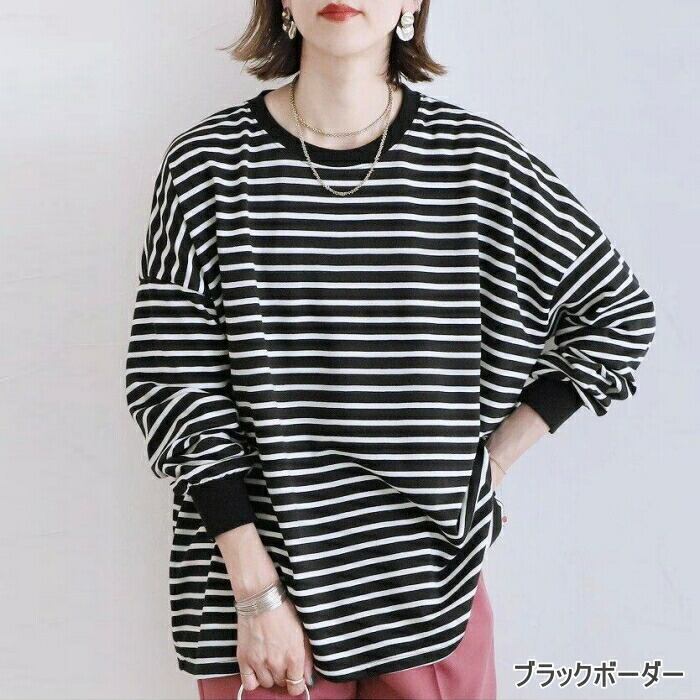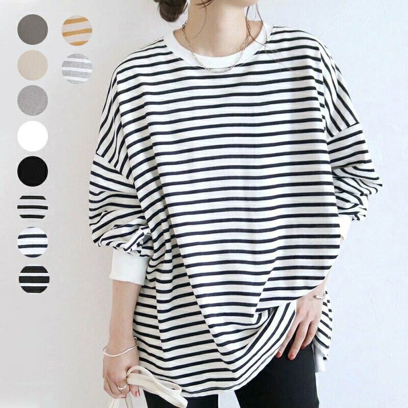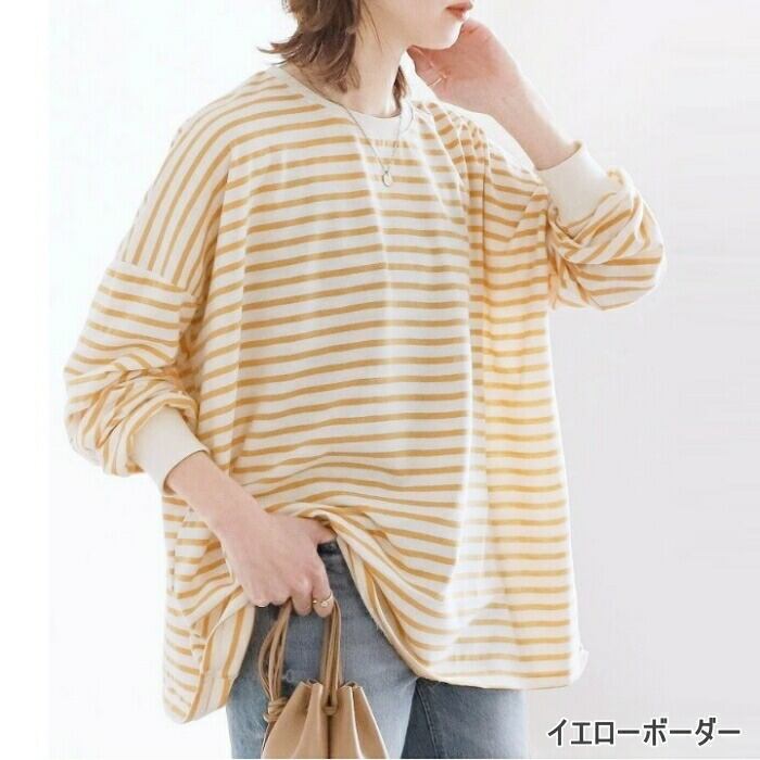 全10色 大きいサイズ 体型カバー エレガント フェミニン おしゃれ カットソー シンプル ゆったり トップス Tシャツ レディース きれいめ カジュアル 大人可愛い 春 秋 冬 長袖 ボーダー 無地 ドロップショルダー オーバーサイズ イエロー ネイビー ベージュ ブラック 黒 グレー 20代 30代 40代 50代 M L
