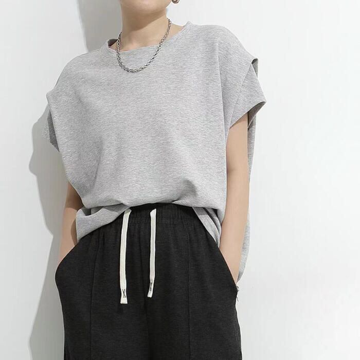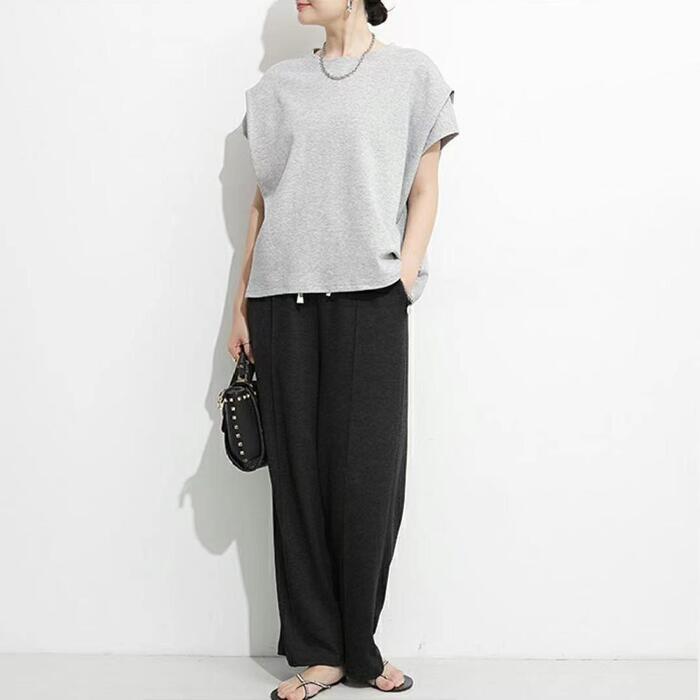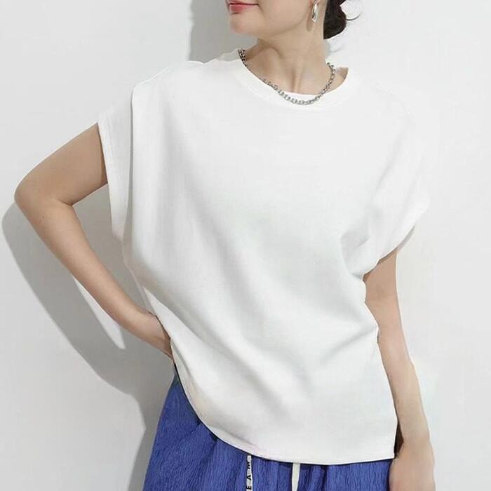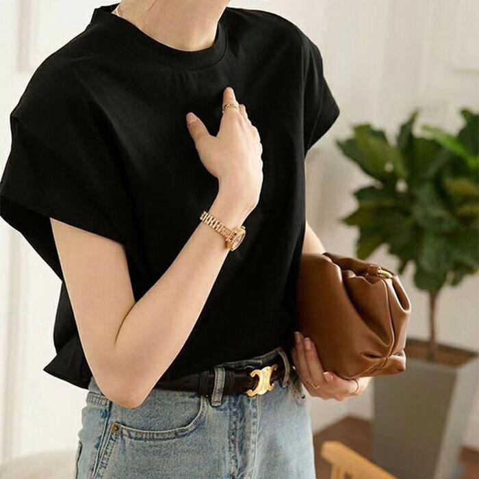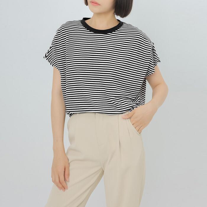 肩部分にタックを施した、フレンチスリーブTシャツ。
