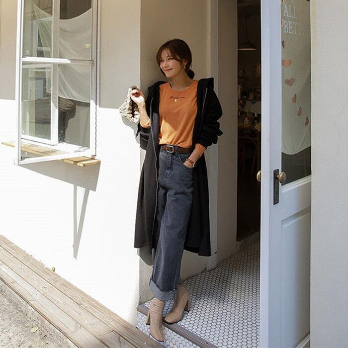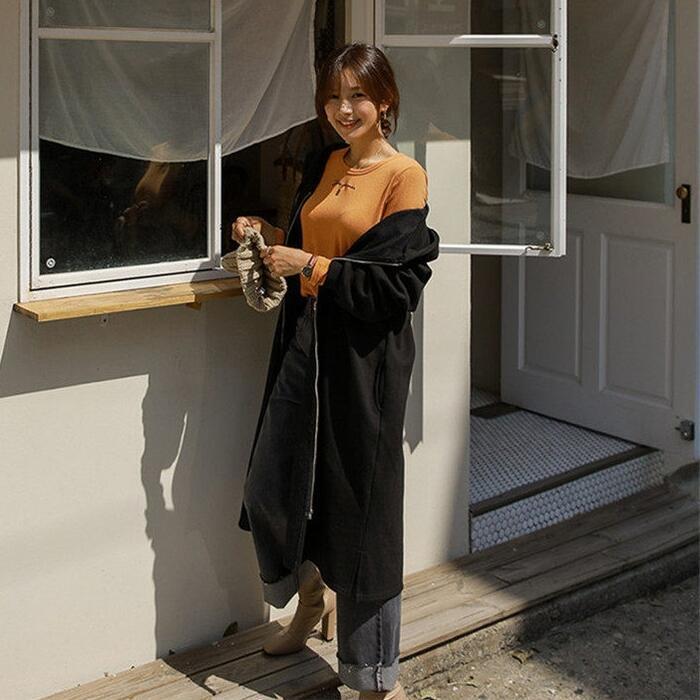 リラックス感漂うロング丈のジップアップパーカー。