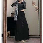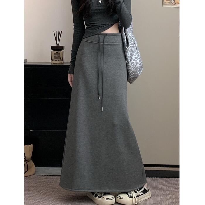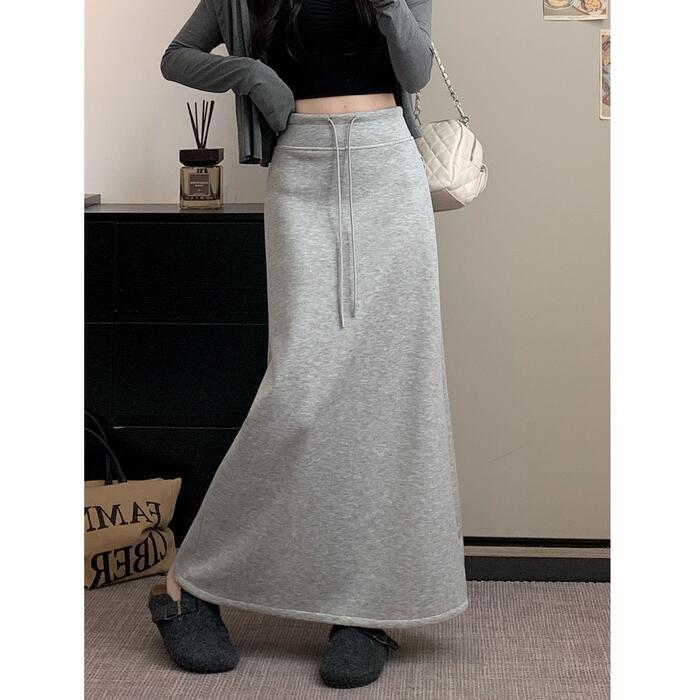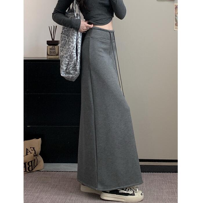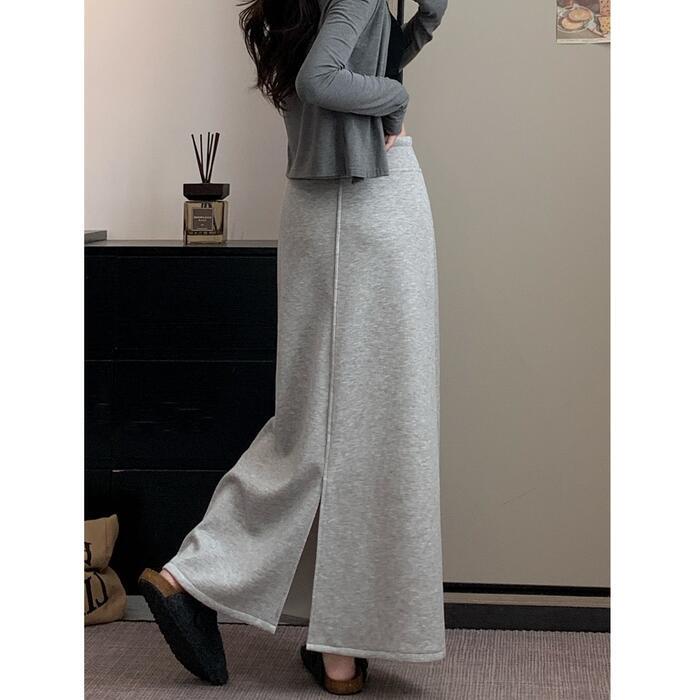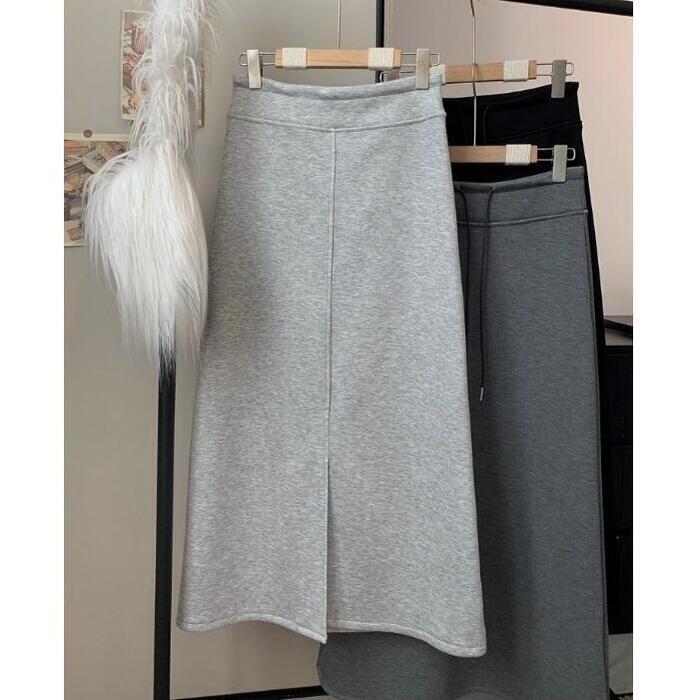 全3色 大きいサイズ 体型カバー エレガント フェミニン おしゃれ 楽ちん シンプル ボトムス スカート レディース きれいめ カジュアル 大人可愛い 春 秋 冬 スウェット 裏起毛 スリット ロング丈 ウエストゴム ハイウエスト グレー ブラック 黒 20代 30代 40代 50代 S M L XL 2XL 3XL 4XL