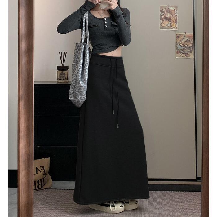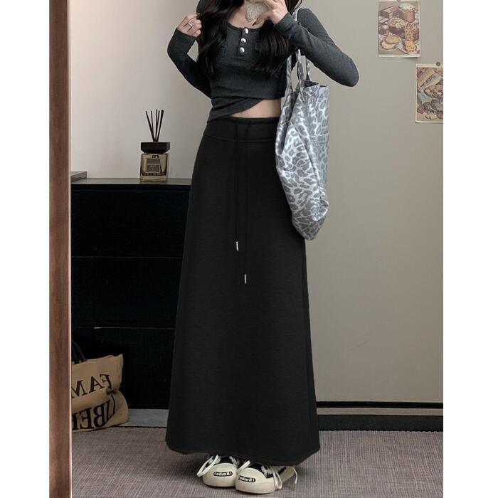 寒い季節の強い味方、裏起毛素材を使用したロングスカート。