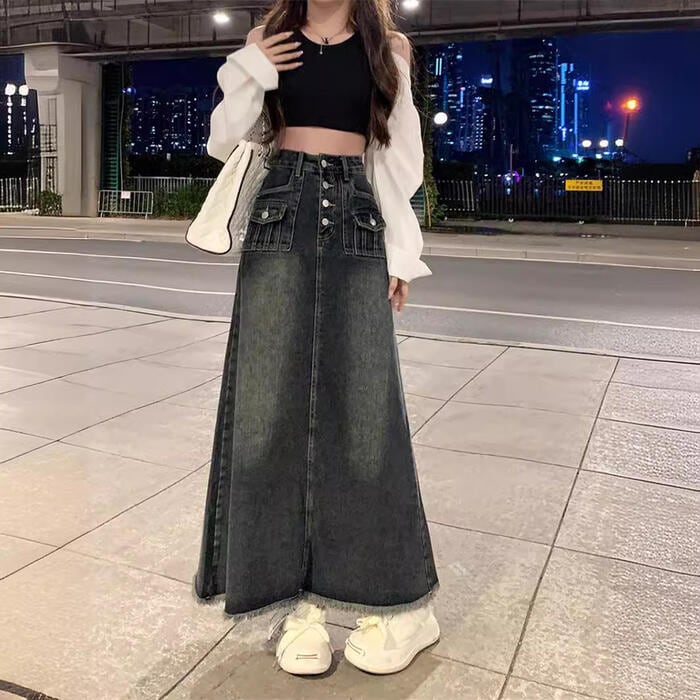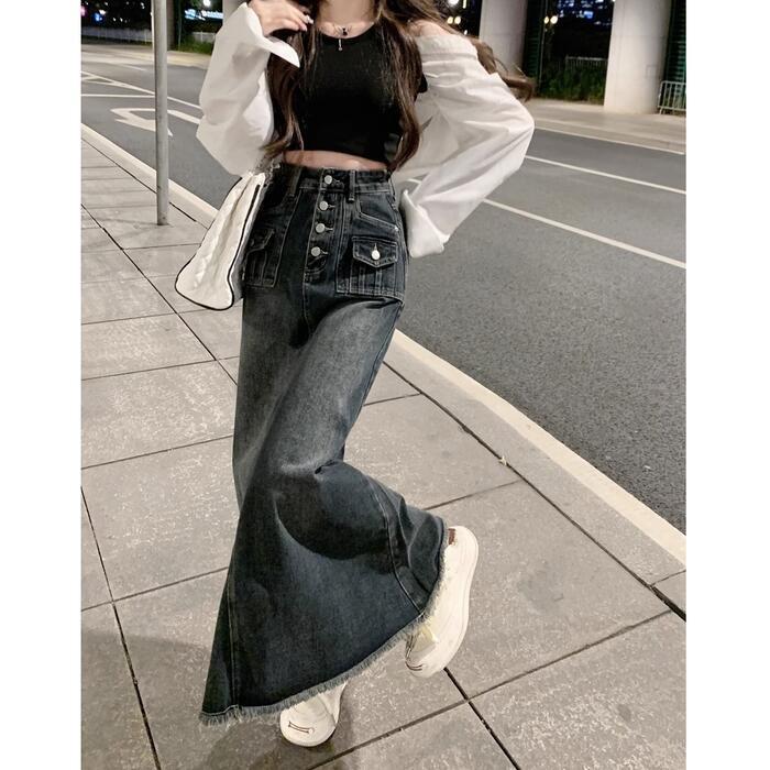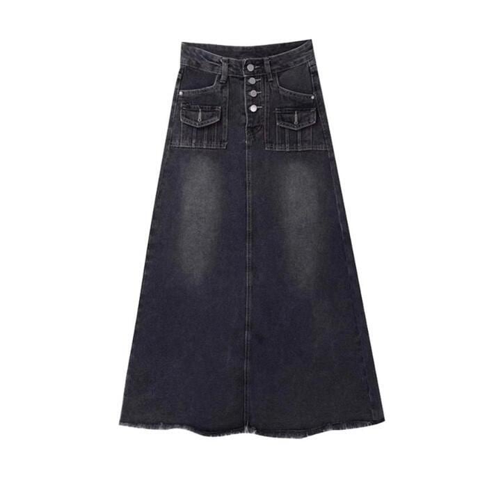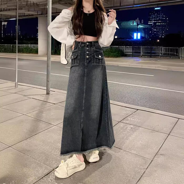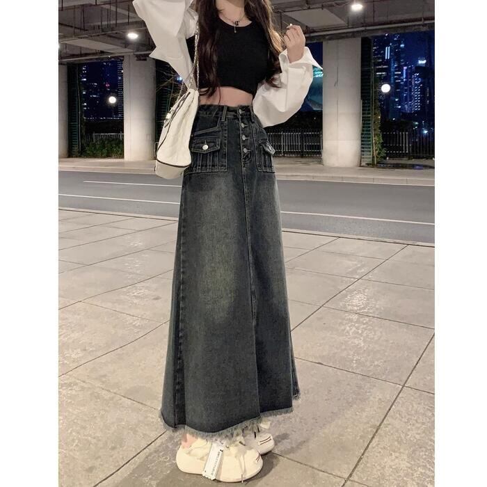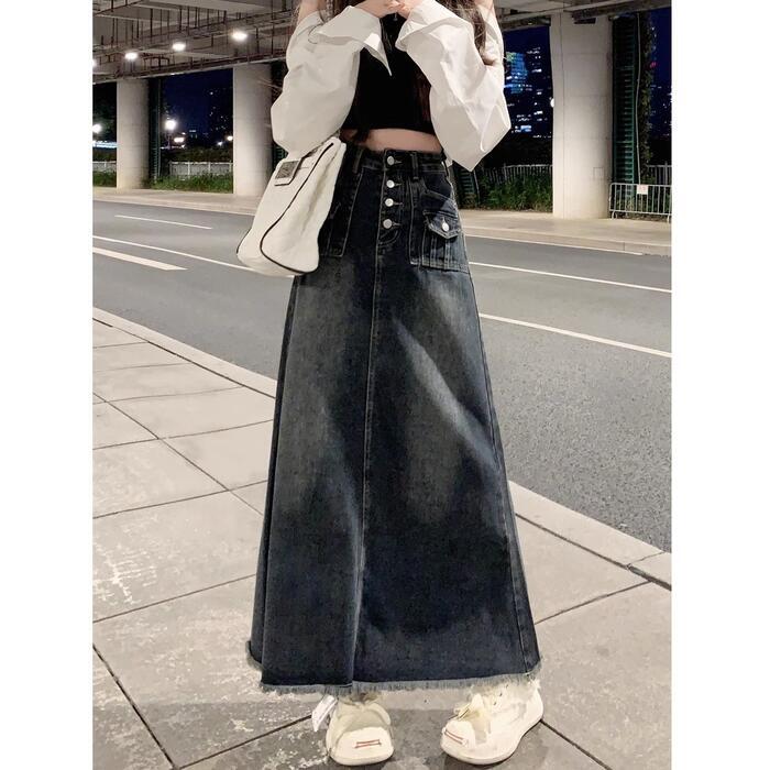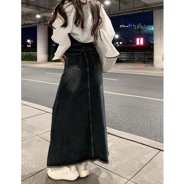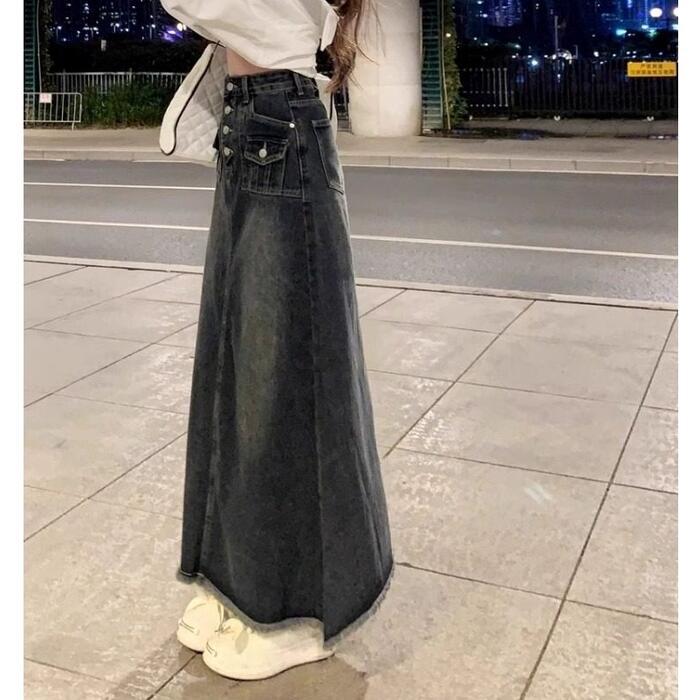 クラシカルなディテールを詰め込んだ主役級のデニムロングスカート。