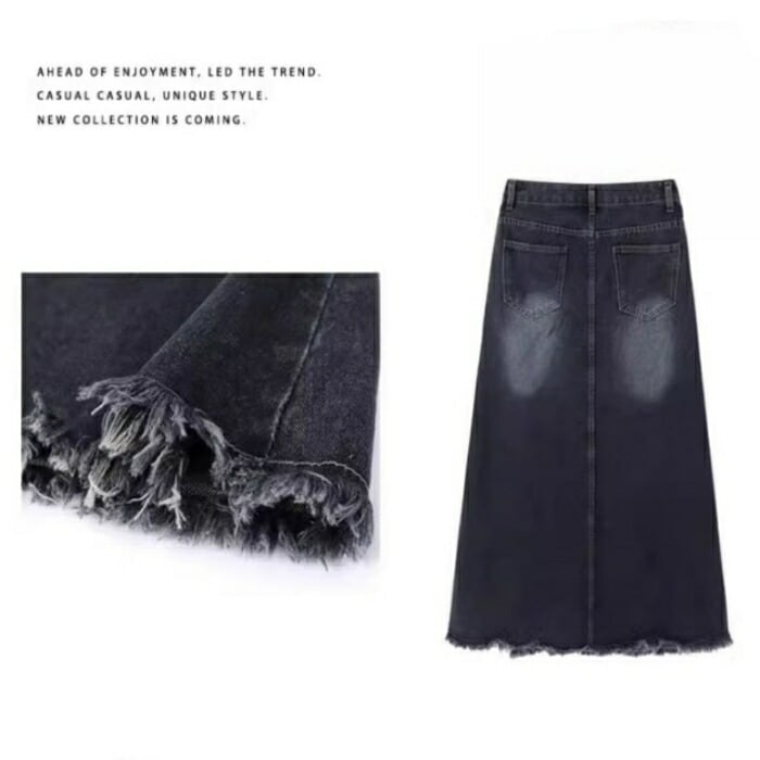 大きいサイズ 体型カバー エレガント フェミニン おしゃれ 楽ちん シンプル ヴィンテージ ボトムス スカート レディース きれいめ カジュアル 大人可愛い 春 秋 冬 デニム ダメージ フリンジ スリット ロング丈 フレアスカート ハイウエスト ブルー 青 20代 30代 40代 50代 M L XL 2XL 3XL 4XL